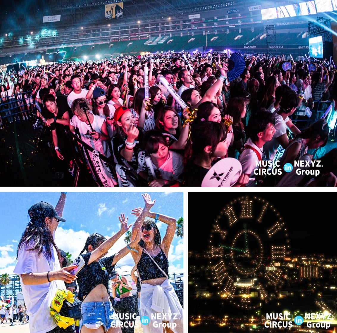 また、MUSIC CIRCUSが開催地域とファンユーザーに支持される理由の一つは、フィナーレを飾る花火演出やドローンショーです。大阪府泉南市では開催できなくなっていた花火大会を13年ぶりに復活させるなど、多くの省庁や自治体と地域活性化の分野で連携をしています。