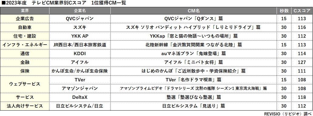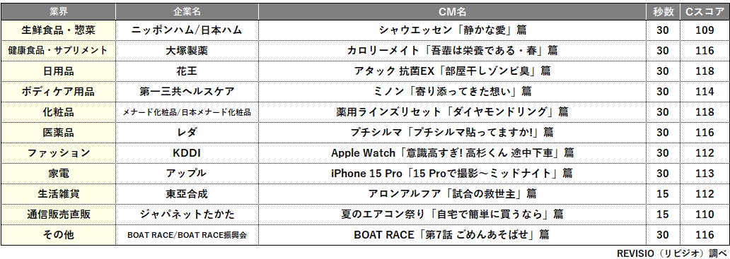 ※各CMのカテゴリー分けは、REVISIOの定義によるものとする