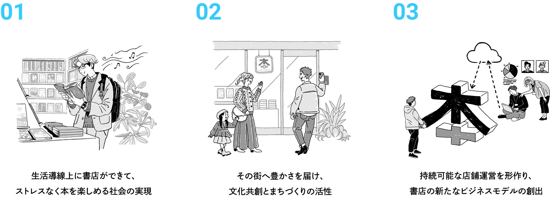 グループ経営理念「人と文化のつながりを大切にして、すべての人の心に豊かさを届ける」のもと、街に書店のある風景と、誰もが自由に本と触れ合える環境を守るために、出版流通改革に取り組んでいます。また、より多くの人々に、さらなる豊かさを届けるため、出版物の流通という既存のビジネスの枠に捉われず、新たな書店の形の開発、本を起点としたプロデュース事業、遊休資産のリノベーションによる公共的プレイスの創造など、事業ドメインを拡張しながら、人々の豊かな心の育みに貢献し続けています。