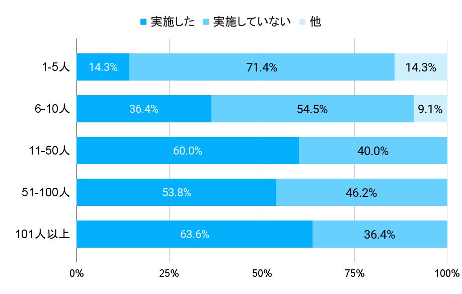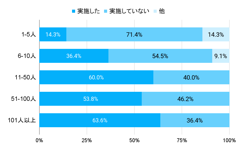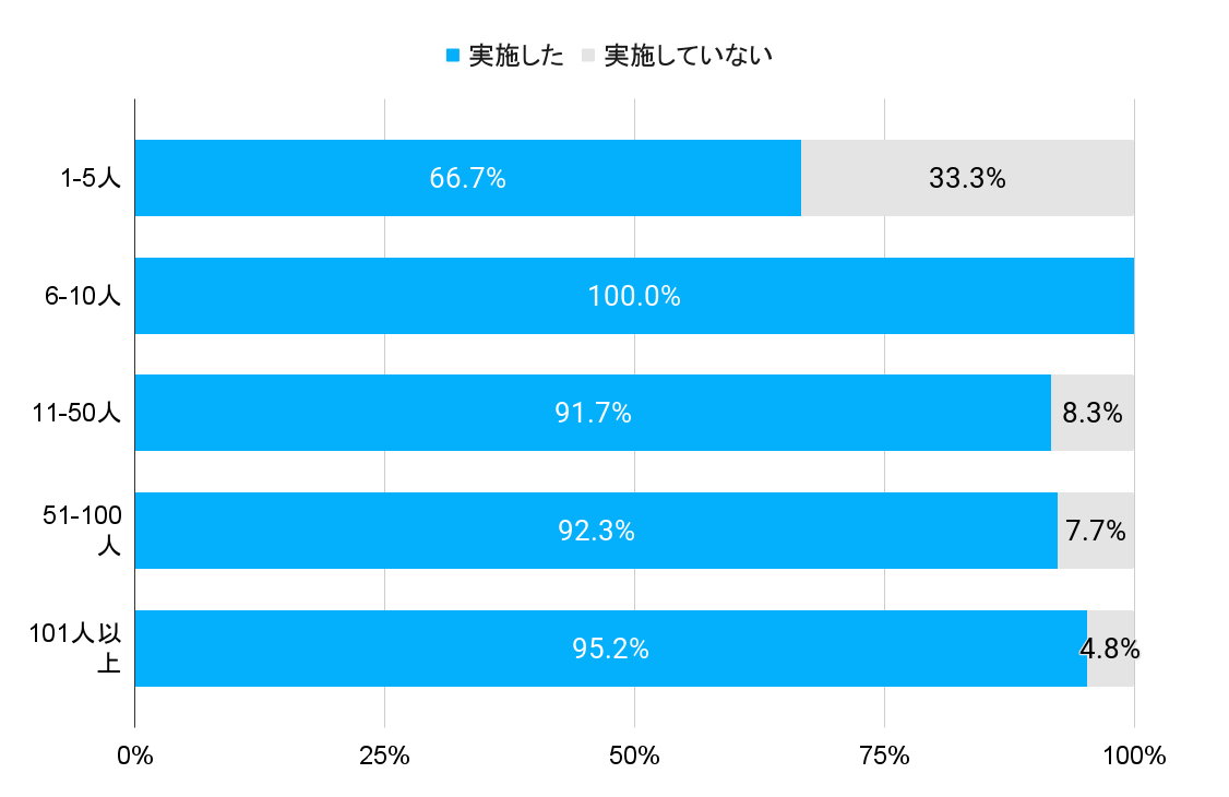 ・66.7%が、開発組織が1-5人の小規模な組織でも座学研修は実施していると回答