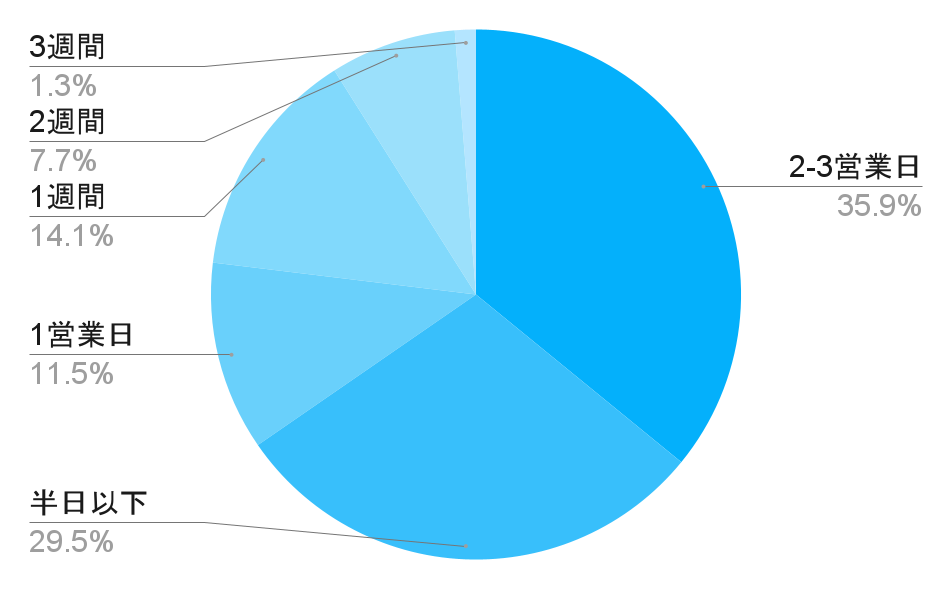 ・76.9%が、3営業日以下(半日以下、1営業日、2-3営業日)の座学研修を実施と回答