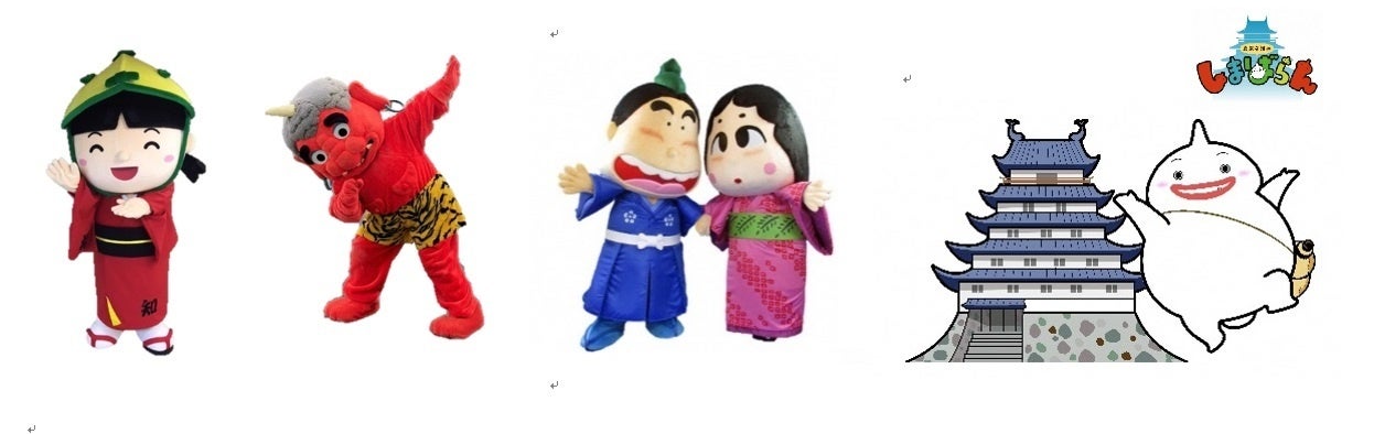 福知山市のゆるキャラ、ドッコちゃん・酒呑童子・光秀くんとひろこさんに加え、姉妹都市島原市の “しまばらん”もやってきます!