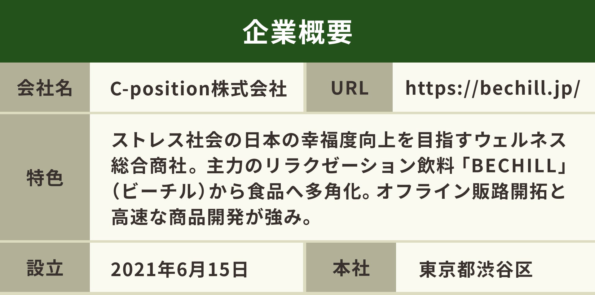 疲れた世界に、"癒やし"をさずける。リラクゼーションドリンクを起点に多品種展開でウェルネス総合商社を目指す「C-position」、イークラウドでの資金調達を6月16日に開始