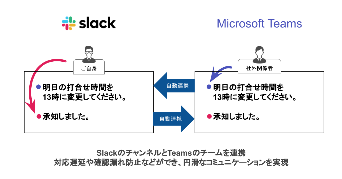SlackとTeamsの連携により対応遅延や確認漏れ防止などができ、円滑なコミュニケーションを実現することができます。