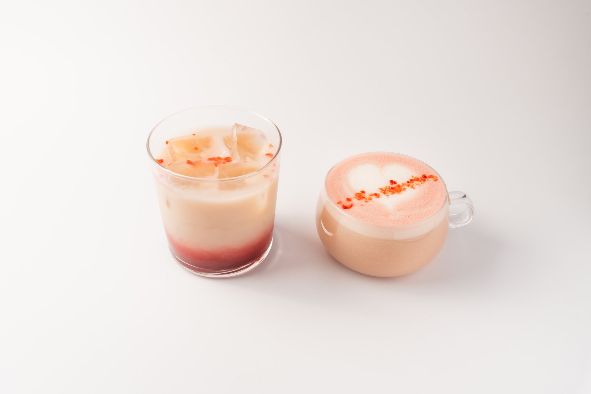 ハイビスカス・ローズヒップ・アサイーなど、ビタミンCやポリフェノールなどを多く含むハーブティーをベースに、食物繊維豊富なオーツミルクを合わせたノンカフェインで体に優しいティーラテです。オーツ麦の香ばしさにローズヒップやベリーの甘酸っぱさが相性ぴったりの味わいです。ハート模様のラテアートやピンクのグラデーションで、見た目もキュートに仕上げました。この期間にしか味わえないmederiオリジナルドリンクをご賞味ください。