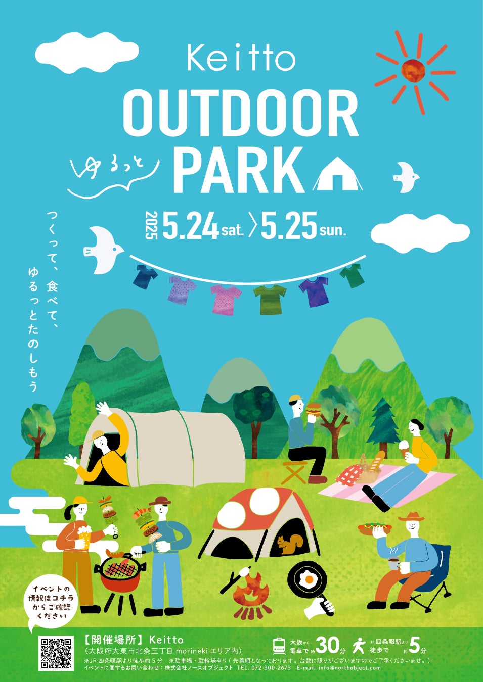 株式会社ノースオブジェクト(本社:大阪府大東市、社長:南大助)が運営する、子育てママとファミリーに手に届く豊かな暮らしを提案する街「Keitto(ケイット)」では、5月24日(土)5月25日(日)に [ゆるっと アウトドアパーク イベント] を開催します!