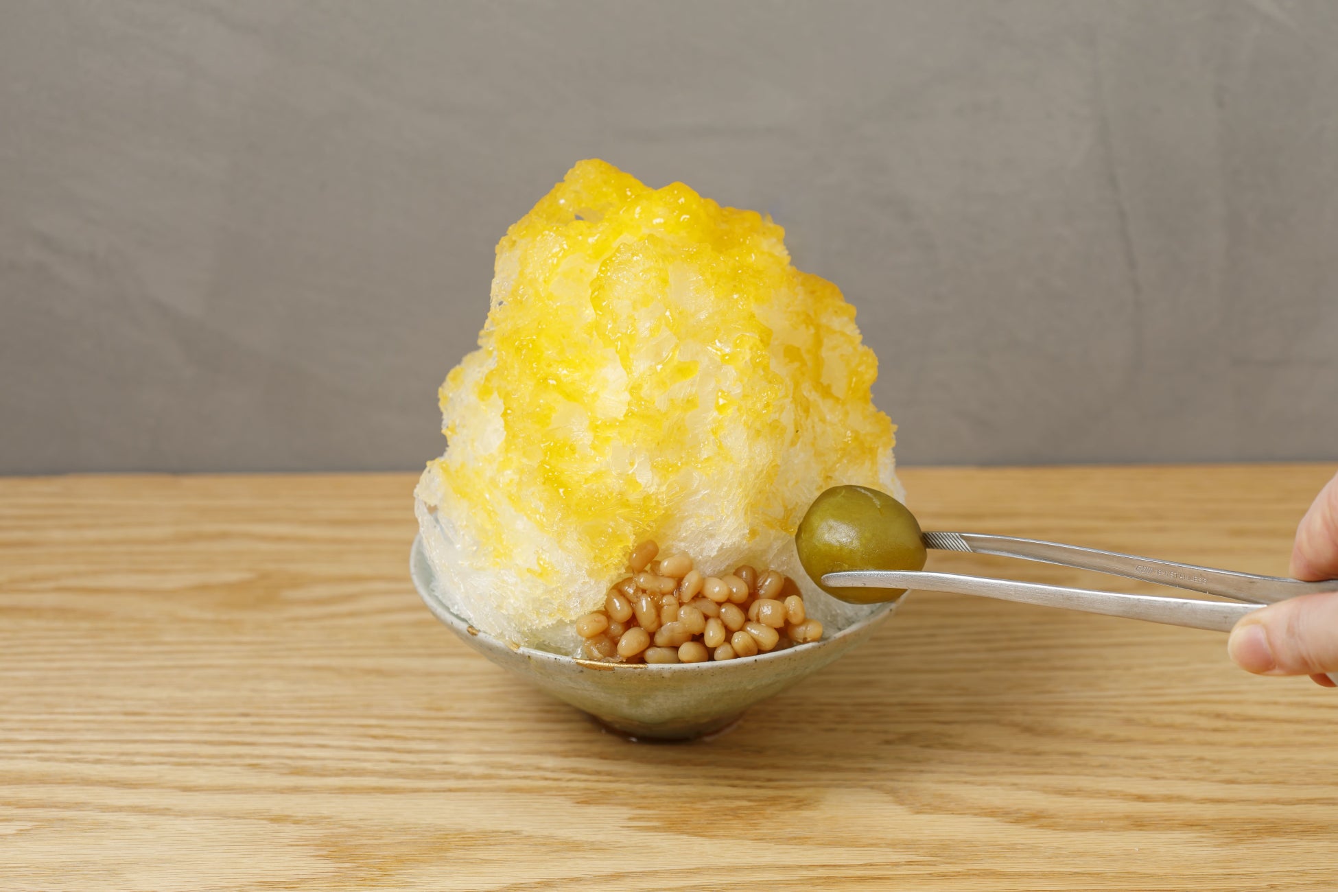別添えでご用意する「The CHOYA 至極の梅シロップ」を回しかけると、完熟南高梅の鮮やかな黄色に変化し、華やかな香りとみずみずしさがプラスされます。