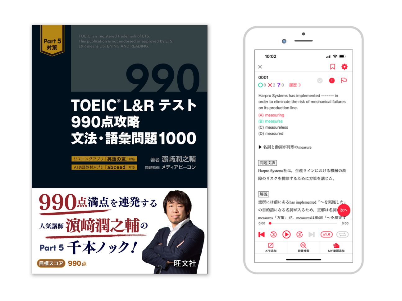 『TOEIC(R) L&Rテスト 990点攻略 文法・語彙問題1000』がAI英語教材『abceed』の有料版に対応!