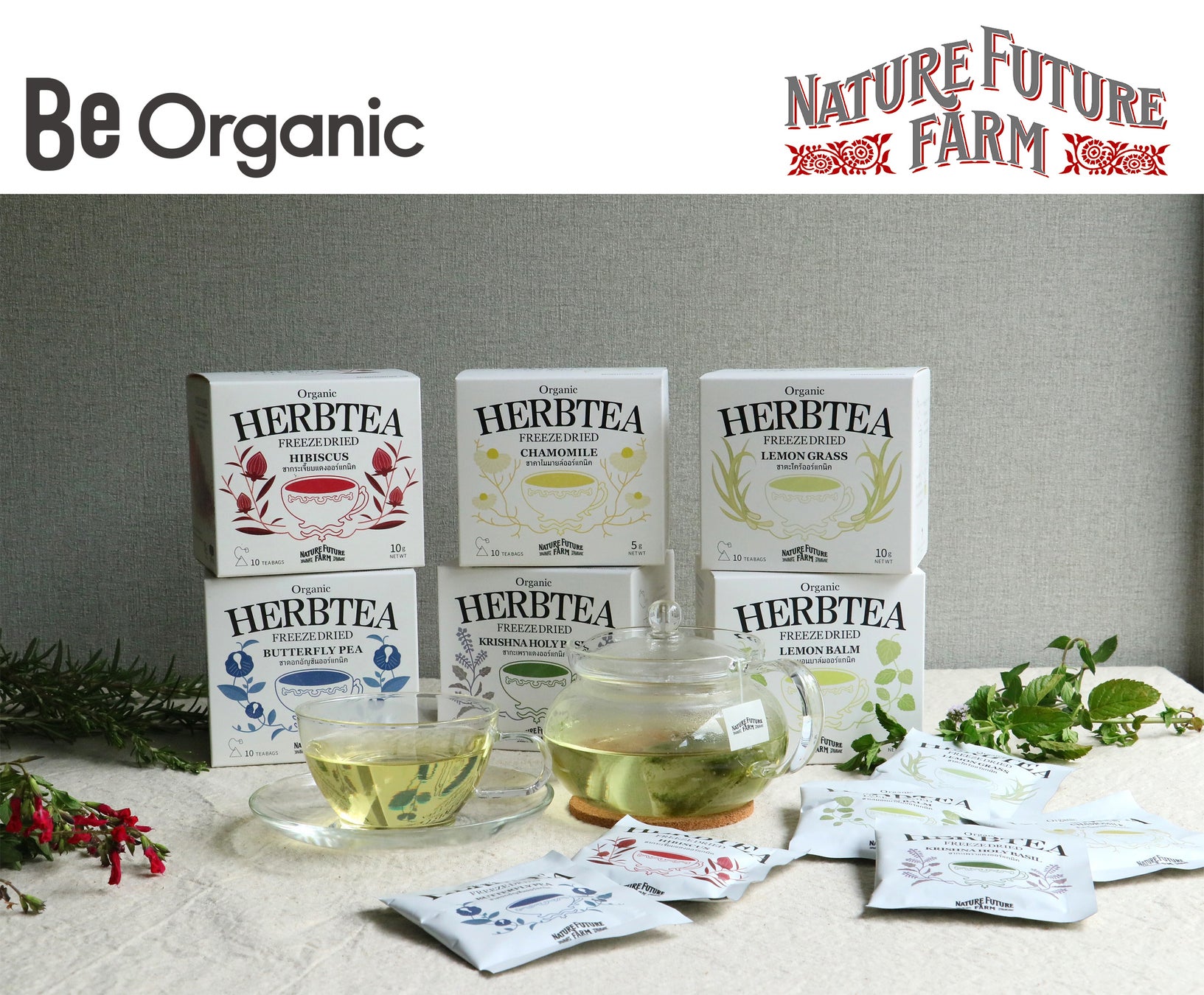 サステナブルビューティーブランド『Be』を展開する株式会社Be(本社:東京都港区、代表取締役:稲垣 大輔)の旗艦店『Be Organic 丸の内本店』にて、株式会社コスモス食品が展開する 有機フリーズドライブランド『NATURE FUTURE FARM』のPOP-UPを初開催。10月1日(火)〜31日(木)の期間中、新発売のオーガニックハーブティー6種が登場します。