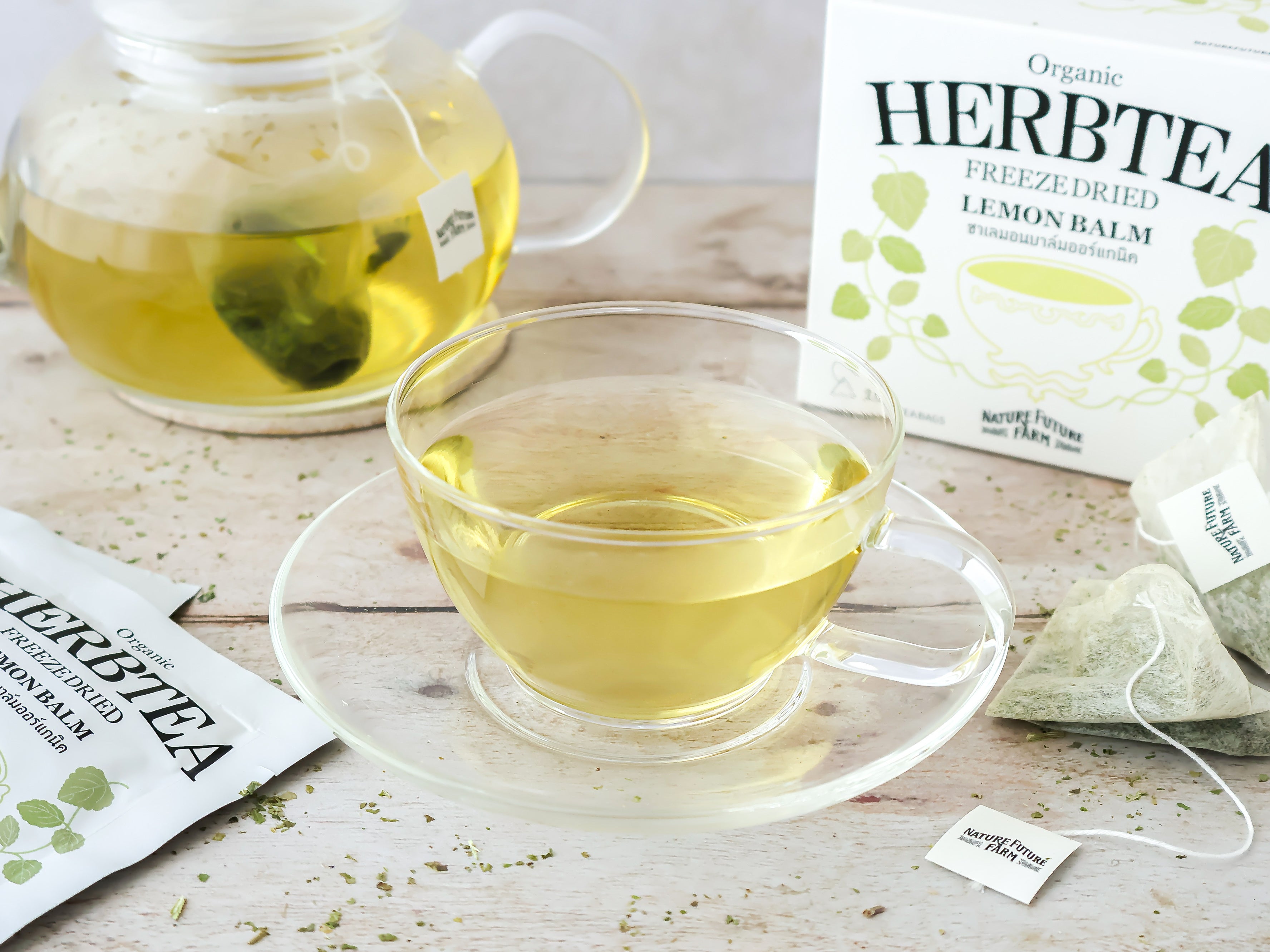 1品ずつ楽しんでいただくのはもちろん、「カモミールティー」「レモングラスティー」「レモンバームティー」をブレンドさせたアレンジもおすすめです。
