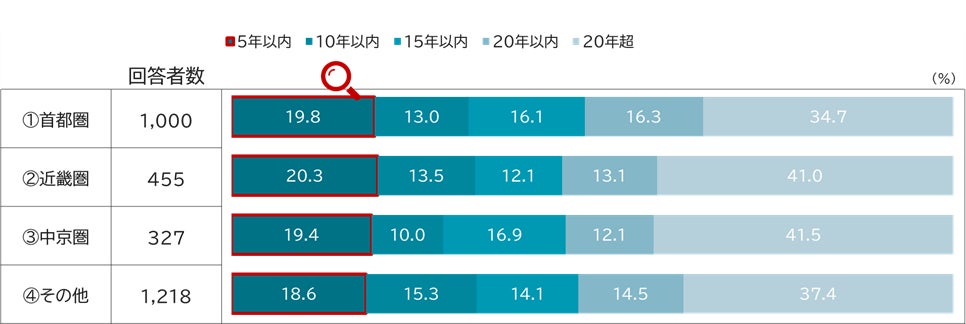 足元の住宅ローンの借入実態を把握するため本調査では、3大都市圏(首都圏、近畿圏、中京圏)とそれ以外(その他)の4つのエリアに分け、過去5年以内(2020年~2025年)に住宅ローンの借入を開始された方を対象に深堀りしています【図表2】。