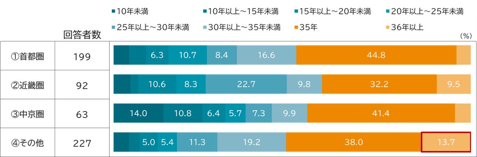 返済設定期間は、35年以上が50%超、36年以上の選択割合13.7%と3大都市圏よりも高い結果となりました。
