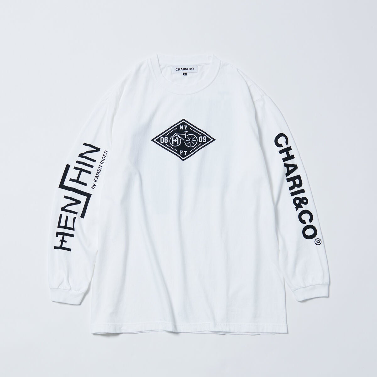 また「HENSHIN by KAMEN RIDER」と「CHARI&CO」の初コラボレーションアイテム『ロングスリーブ Tシャツ』『JET キャップ』も同時リリースいたします。ニューヨークと風都、それぞれの街をテーマにしたデザインとなっています。CHARI&COの自転車ロゴの車輪部分を風都タワーの「風車」とHENSHIN by KAMEN RIDERの「H」マークに見立てたオリジナルマークも作成しました。