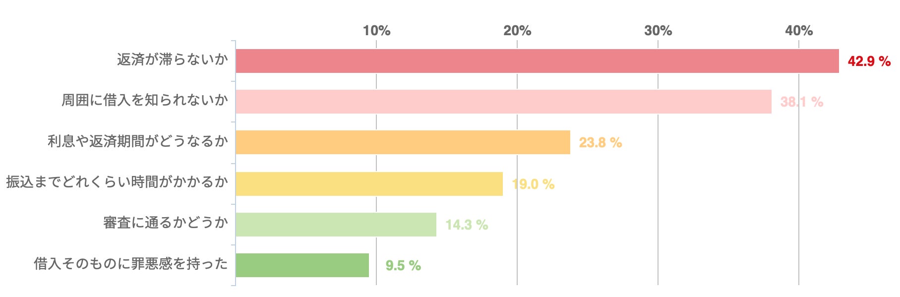 アンケートによれば、主な懸念点として「返済が滞らないか(42.9%)」、「周囲に借入を知られないか(38.1%)」といった点が挙げられた。