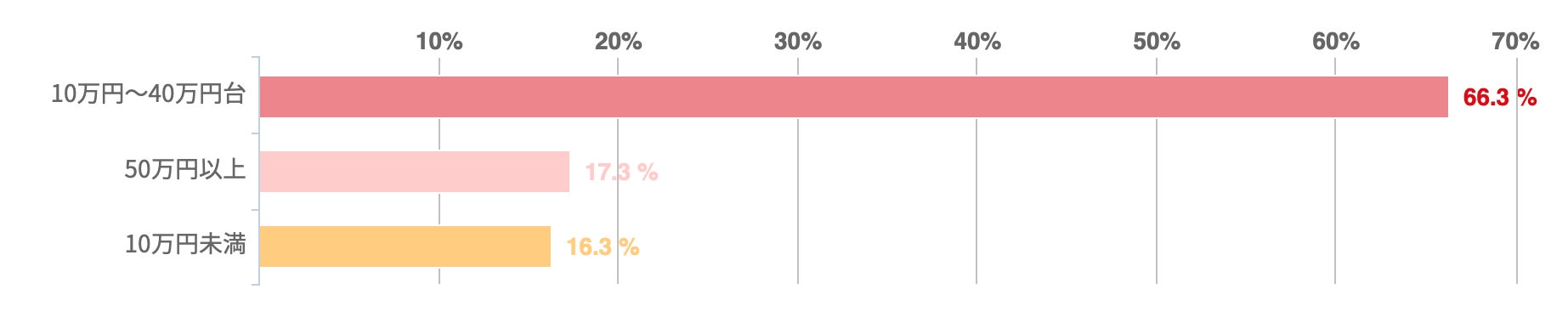 アンケートによれば、アイフルの利用者が借入した金額としては「10万円〜40万円台」が66.3%で圧倒的多数を占めた。そこから、「50万円以上(17.3%)」、「10万円未満(16.3%)」と続いており、多くの利用者が10万円以上の借入を行っていることが明らかとなった。