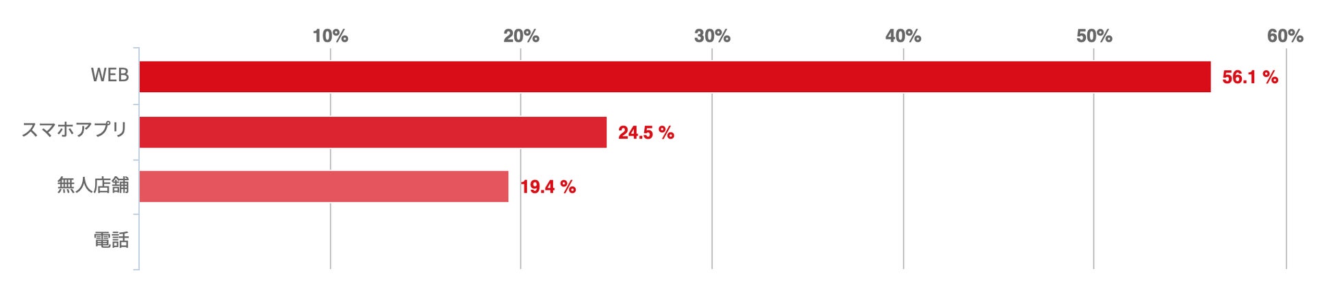 アンケートによれば、アイフルへの申し込み方法としては最も多かったのは「Web」であり、56.1%の回答者が活用している。次いで、「スマホアプリ」が24.5%、「無人店舗」が19.4%の回答者から選ばれており、「電話」を利用していた回答者はいなかった。