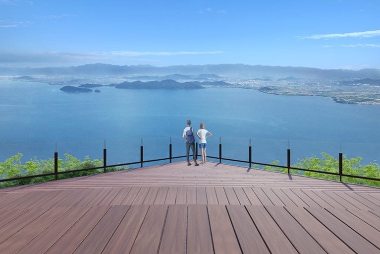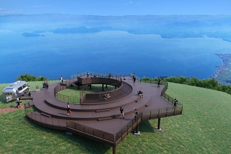 コンセプトはびわ湖と空と緑のゲレンデを漂うような「浮遊感」。びわ湖が一面に広がるびわ湖テラスで最も標高の高い展望スポット7/5(土)リニューアル・グランドオープンに先立ち内覧会を実施
