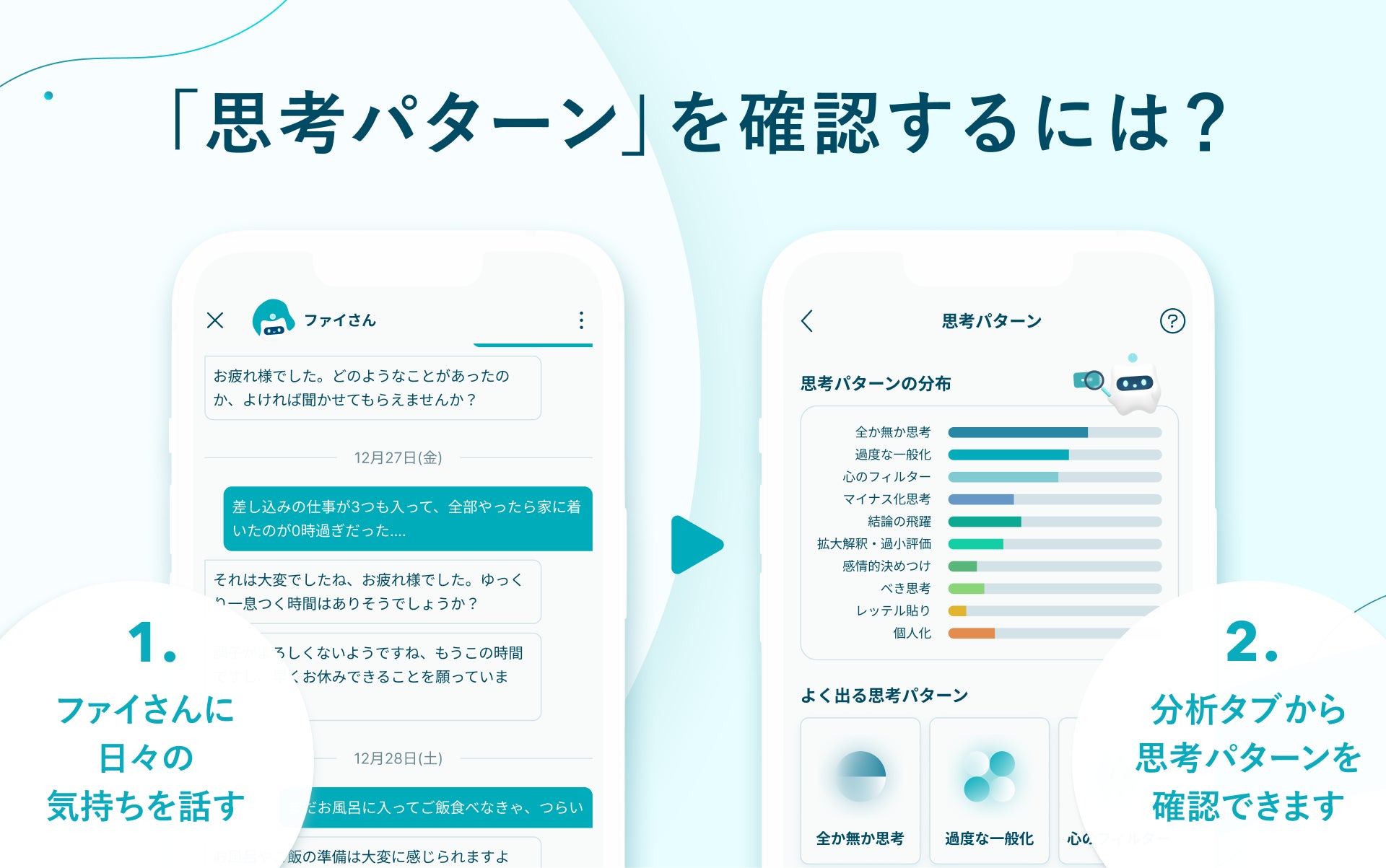 株式会社Awarefy(本社:東京都新宿区、代表取締役 CEO 小川 晋一郎、以下「アウェアファイ」)は、2025年9月2日(火)、AIメンタルパートナー「アウェアファイ」アプリにおいて、「AIじぶん分析」シリーズの第四弾となる新機能「思考のパターン分析」をリリース*いたしました。