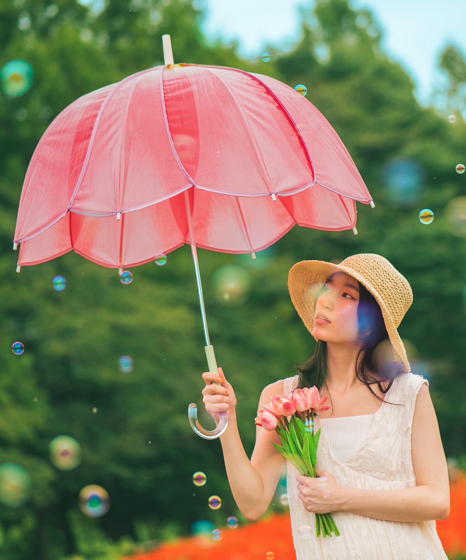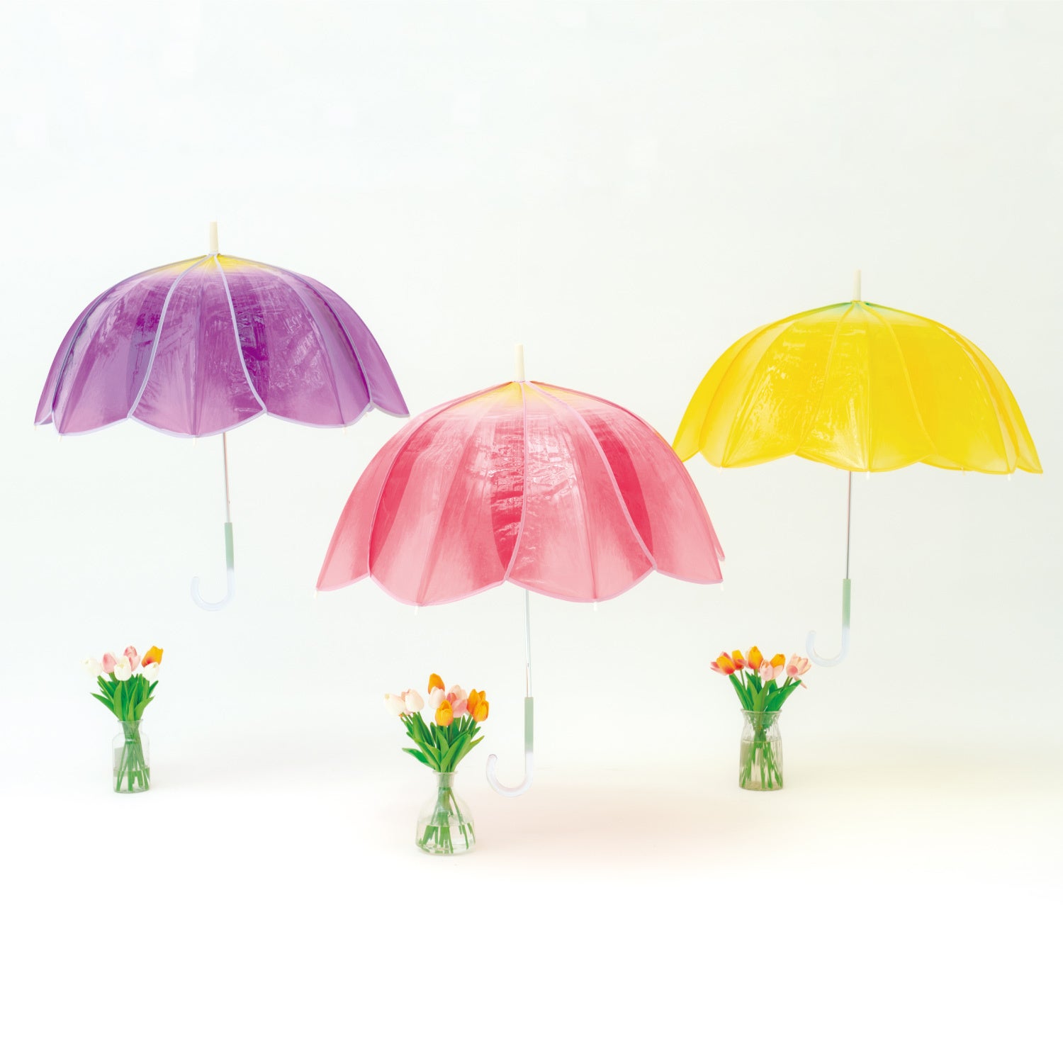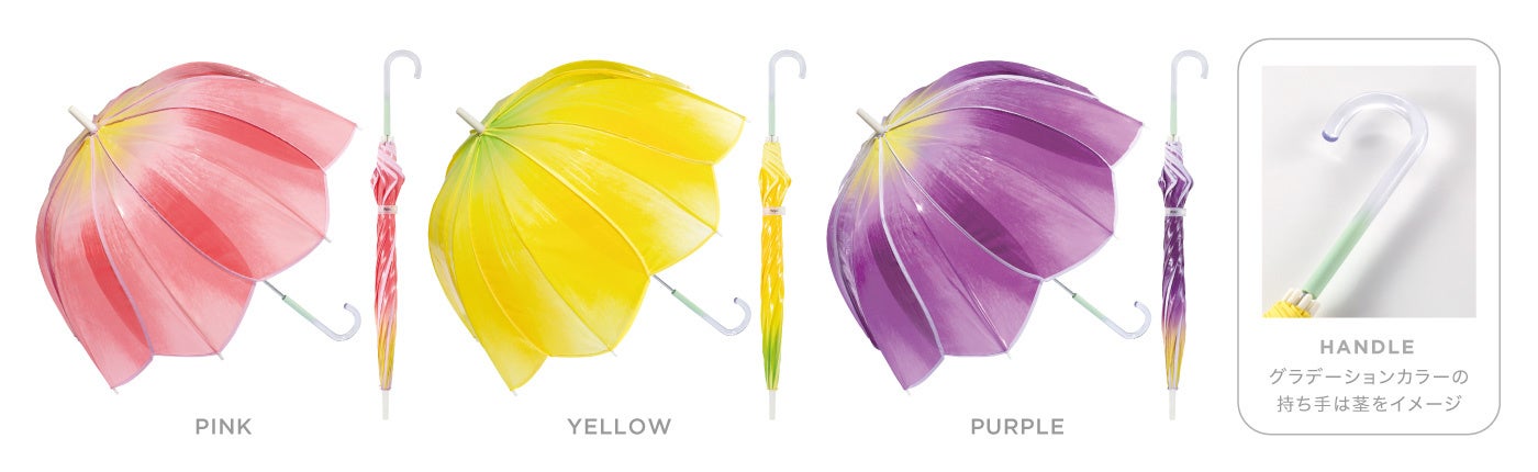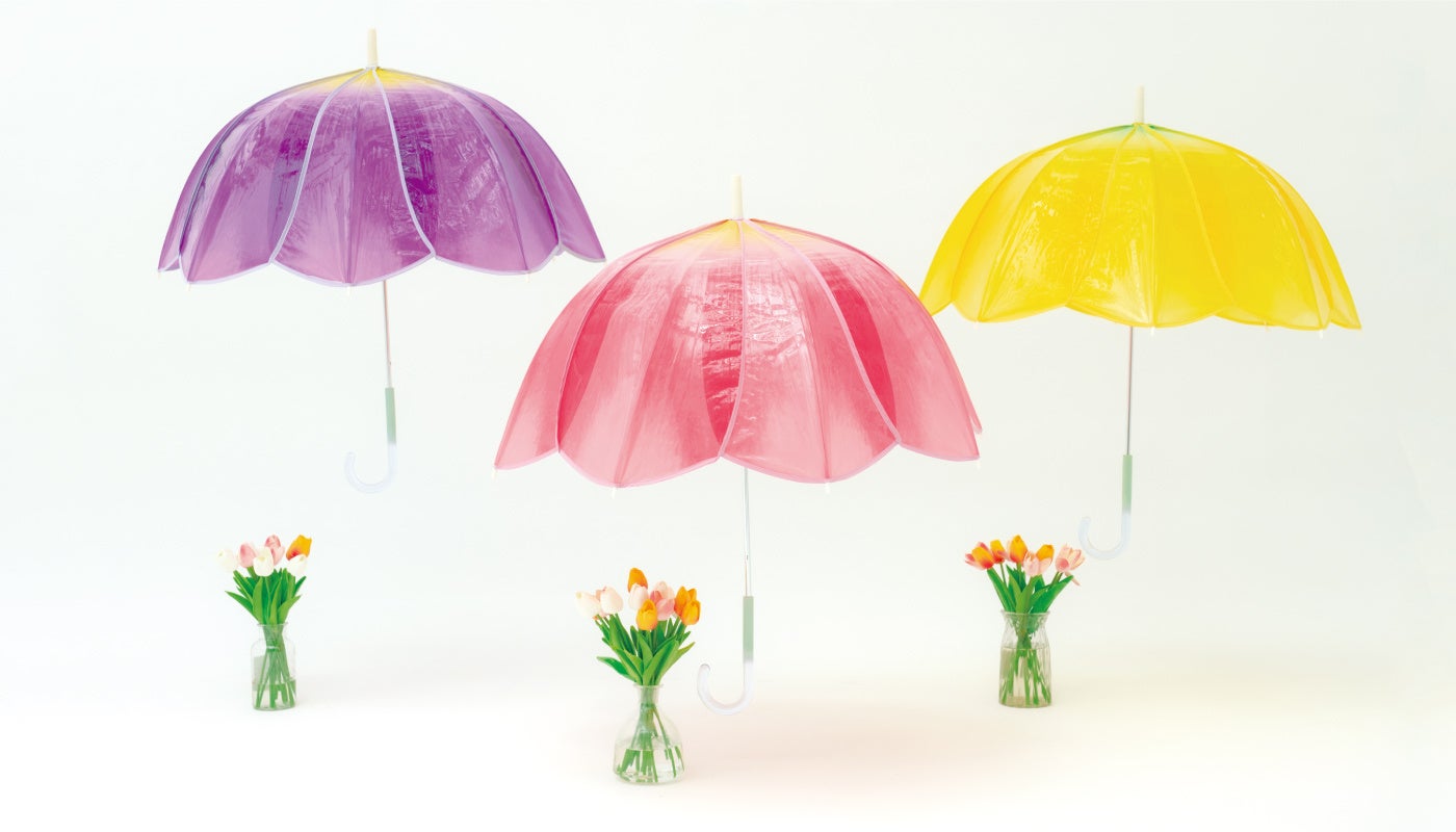 春の訪れを感じる人気のお花「チューリップ」を再現したカラフルなビニール傘!花びら・花脈や持ち手の茎をイメージしたグラデーションなど細部までこだわったWpc.「チューリップアンブレラ」発売