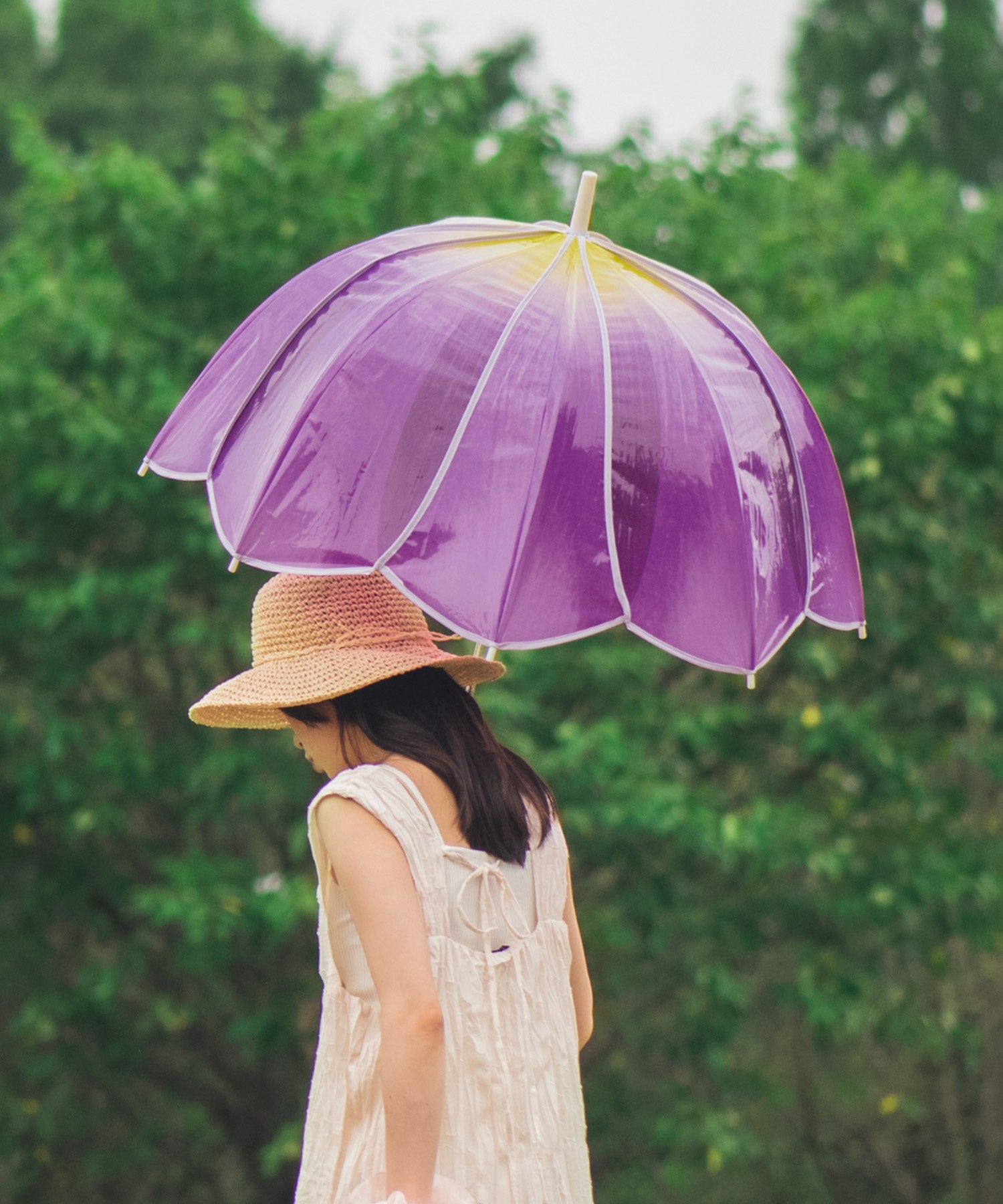 憂鬱な雨の日は可愛い傘を持ってお出かけを、晴れの日にはたくさん写真を撮って楽しんでもらいたいという思いからデザインした傘です。