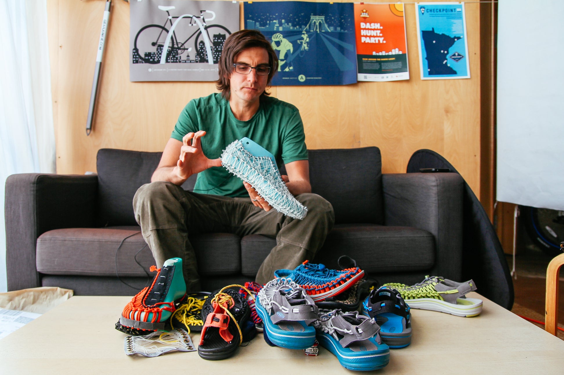 KEEN創業者Rory Fuerst(ローリー・ファースト)の長男、Rory Fuerst Jr.(ローリー・ファースト・ジュニア)。シューズ業界に携わる父の元で育ち、幼少期からフットウェア作りがとても身近だったローリー Jr.は、自然とシューズ業界に身をおくようになる。とてもクリエイティビティに溢れ、新しいアイデアに貪欲な創業者ローリー・ファーストの思想はローリー Jr.にも継承され、のちに彼のキャリアを代表するプロダクト『UNEEK』を開発する原動力となった。2006年にはフットウェアのデザイン開発から商品化に携わる役職に就任。自らを“反乱者”と呼ぶ彼は、従来とはまったく異なる構造の新しいフットウェアができないか構想を練り始め、約3年半の試行錯誤の末、2014年、ついに2本のコードと1枚のソールで編み上げた、その名の通りユニークなオープンエア・スニーカー『UNEEK』が誕生。