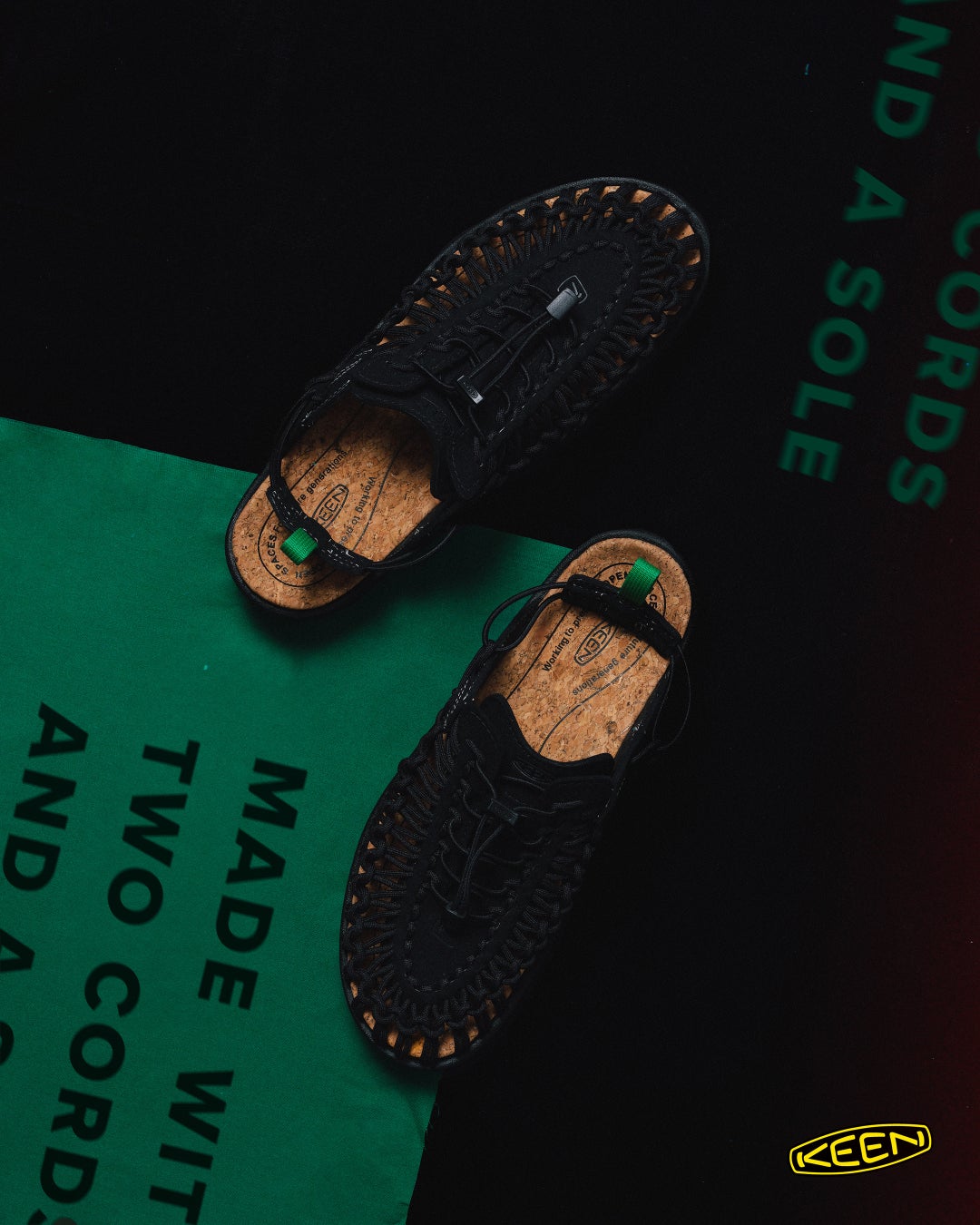 KEEN 創業者Rory Fuerst(ローリー・ファースト)の長男、Rory Fuerst Jr.(ローリー・ファースト・ジュニア)によって発明された革新的フットウェア。2本のコードと1枚のソールで編み上げた、シューズの常識を覆したUNEEKは2014年、日本国内では200足限定販売。