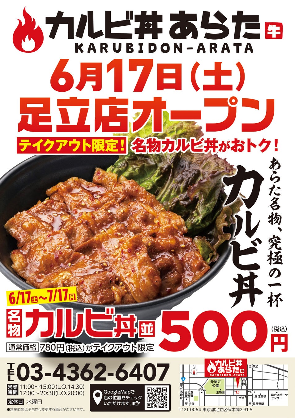 2023年6月17日(土)カルビ丼あらた 足立店オープン