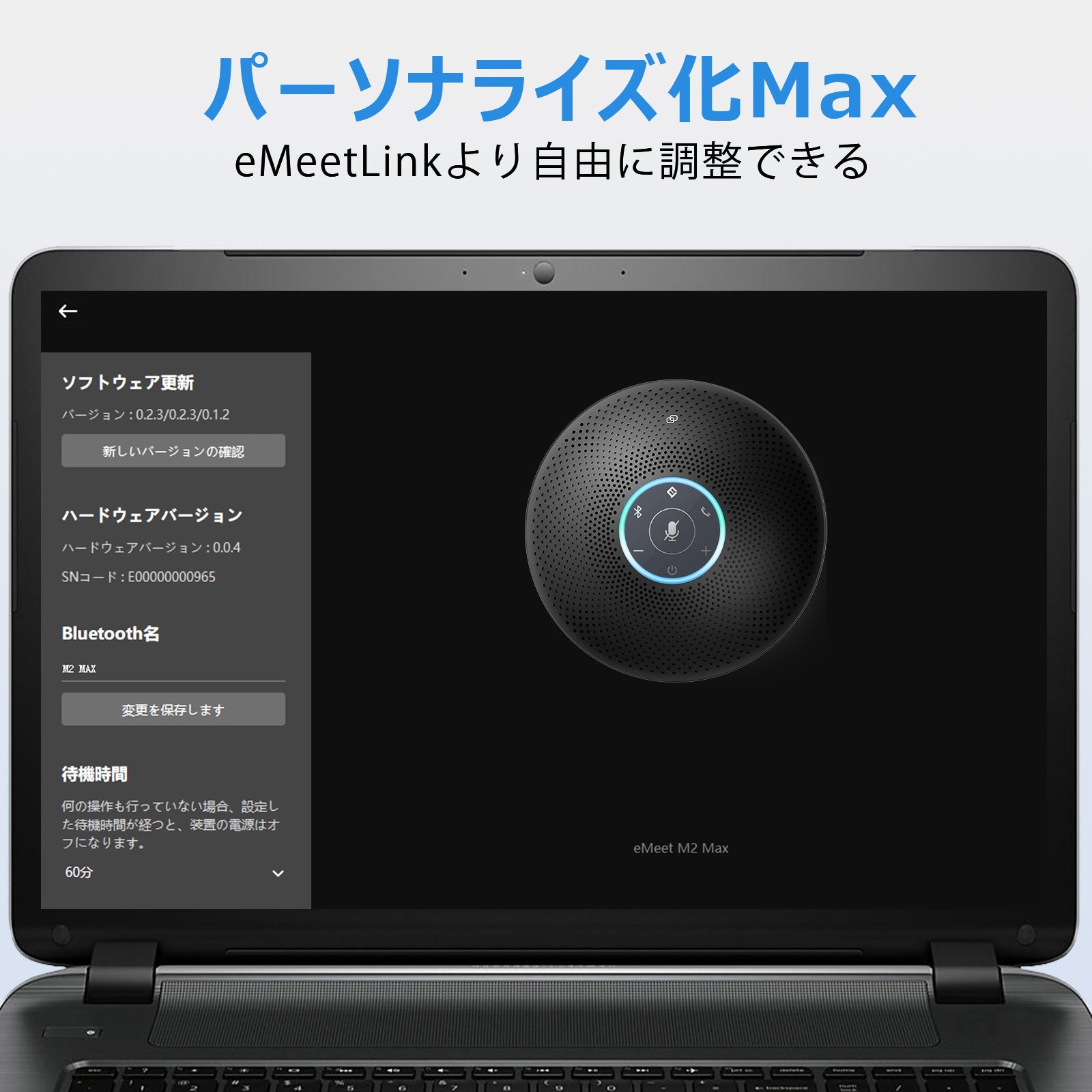 指先で軽く触れるだけで電源オン/オフ、Voice IA オン/オフ、電話出る/切るとミュートをコントロールできます。さらに、無料のEMEET Linkソフトウェアで、M2 Max各機能動作、Bluetooth名前変更、設備のアップグレードなどを調整でき、ご自分のEMEET M2 Maxスピーカーフォンを自由に設定可能です。
