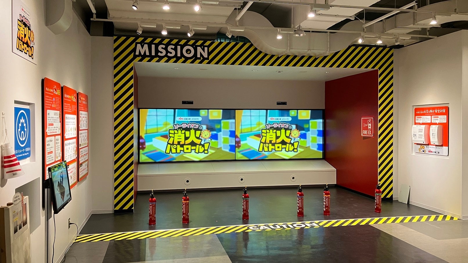 消火器体験コーナーに体験型デジタルコンテンツ「ソーライオンと消火パトロール!」を提供