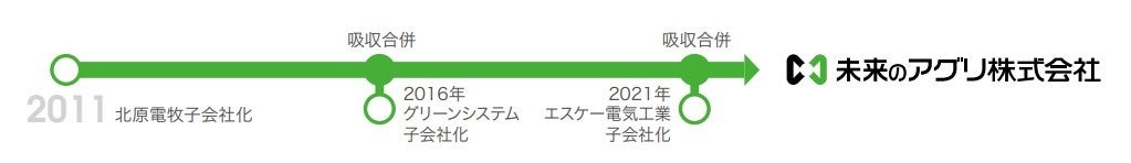 未来のアグリ㈱は、前田工繊株式会社が、2011年に子会社化した鳥獣害対策製品、電気柵、放牧施設等の製造・販売を行う北原電牧株式会社と、2016年に子会社化した園芸用ハウス、農業資材及び栽培システムの設計・施工・販売を行う株式会社グリーンシステムの2社が、2016年に合併し「未来のアグリ株式会社」として新たにスタートしました。2021年には、電気牧柵の製造・販売、酪農用製品の販売を行うエスケー電気工業株式会社を子会社化・吸収合併し、さらなる成長を続けております。
