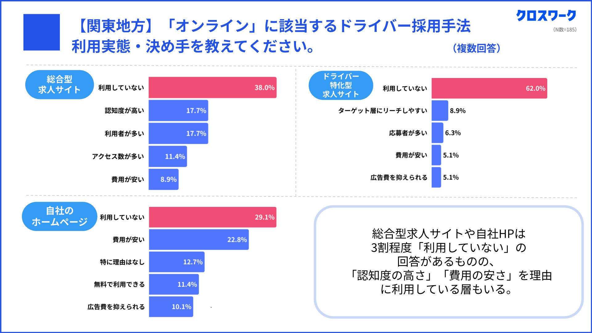 3)関東のドライバー採用、「ハローワーク利用せず」4割に迫る:オンライン活用と自社HPにコスト意識
