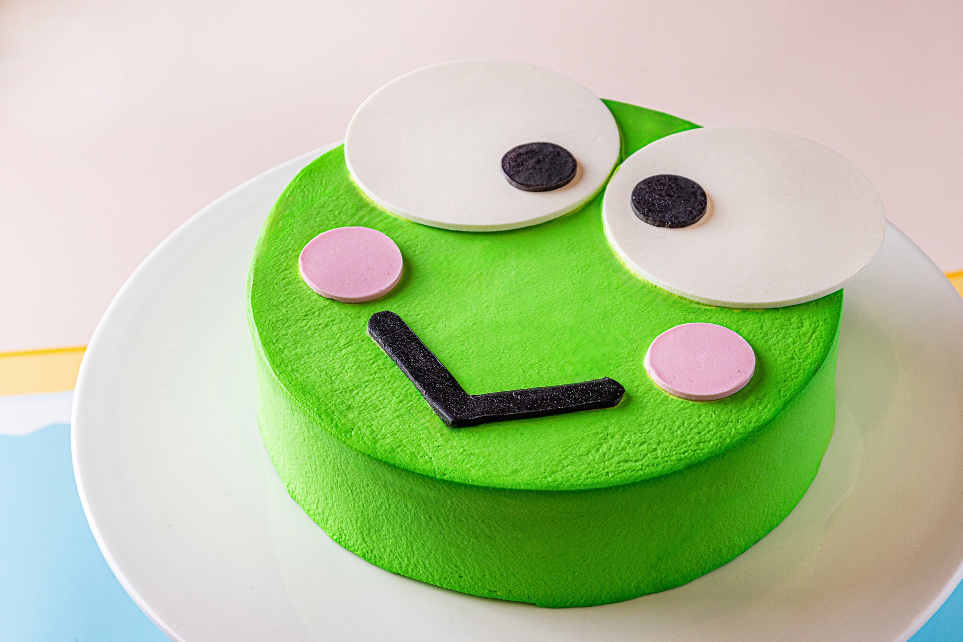 笑顔が愛くるしいけろけろけろっぴの顔を象ったミントとレモンのショートケーキです。