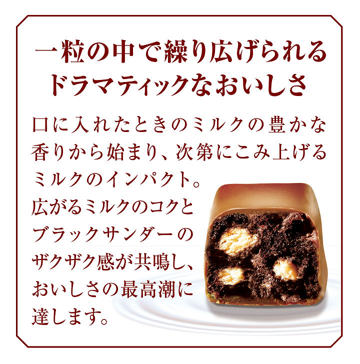 - ミルクの香りとコクがザクザク感と共鳴する、ドラマティックなおいしさを楽しめる「絶品ブラックサンダーひとくちサイズ」が誕生