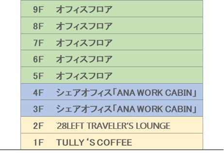 同じく5月、3~4階には、「小さな部屋“CABIN”からチャレンジ企業・スタートアップ企業が事業を拡大し、世界に羽ばたく企業になって欲しい」という想いを込めたANAファシリティーズが運営する初のシェアオフィス「ANA WORK CABIN」が開業する予定です。