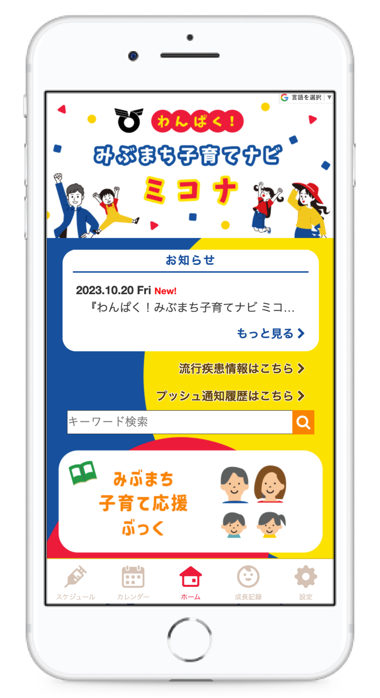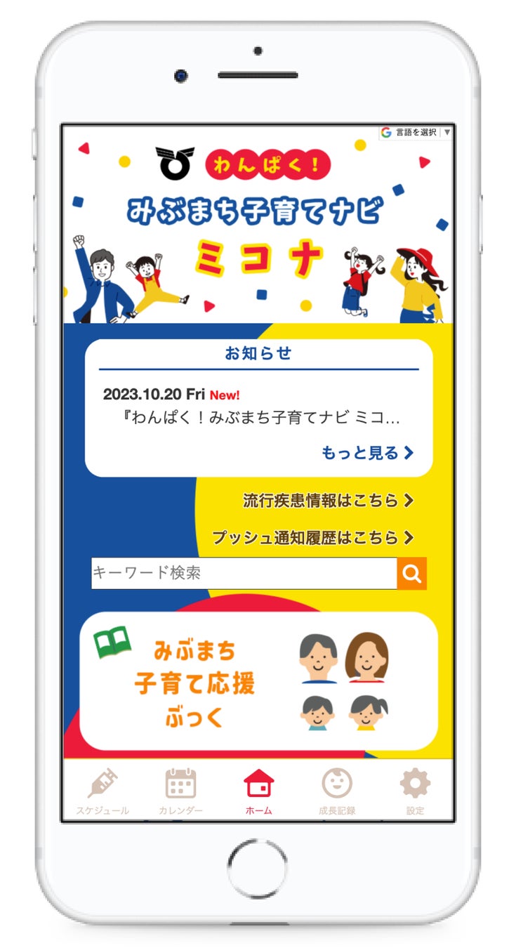 この度、妊娠期からニーズに応じたきめ細かい・切れ目ない子育て支援の一環として、健診・予防接種のお知らせを提供する「わんぱく!みぶまち子育てナビ ミコナ」を導入いたしました。本アプリを通じて、随時子育て情報の配信をおこなってまいります。多くの子育て世代の方に活用していただきたいと思いますので、ぜひご活用ください。