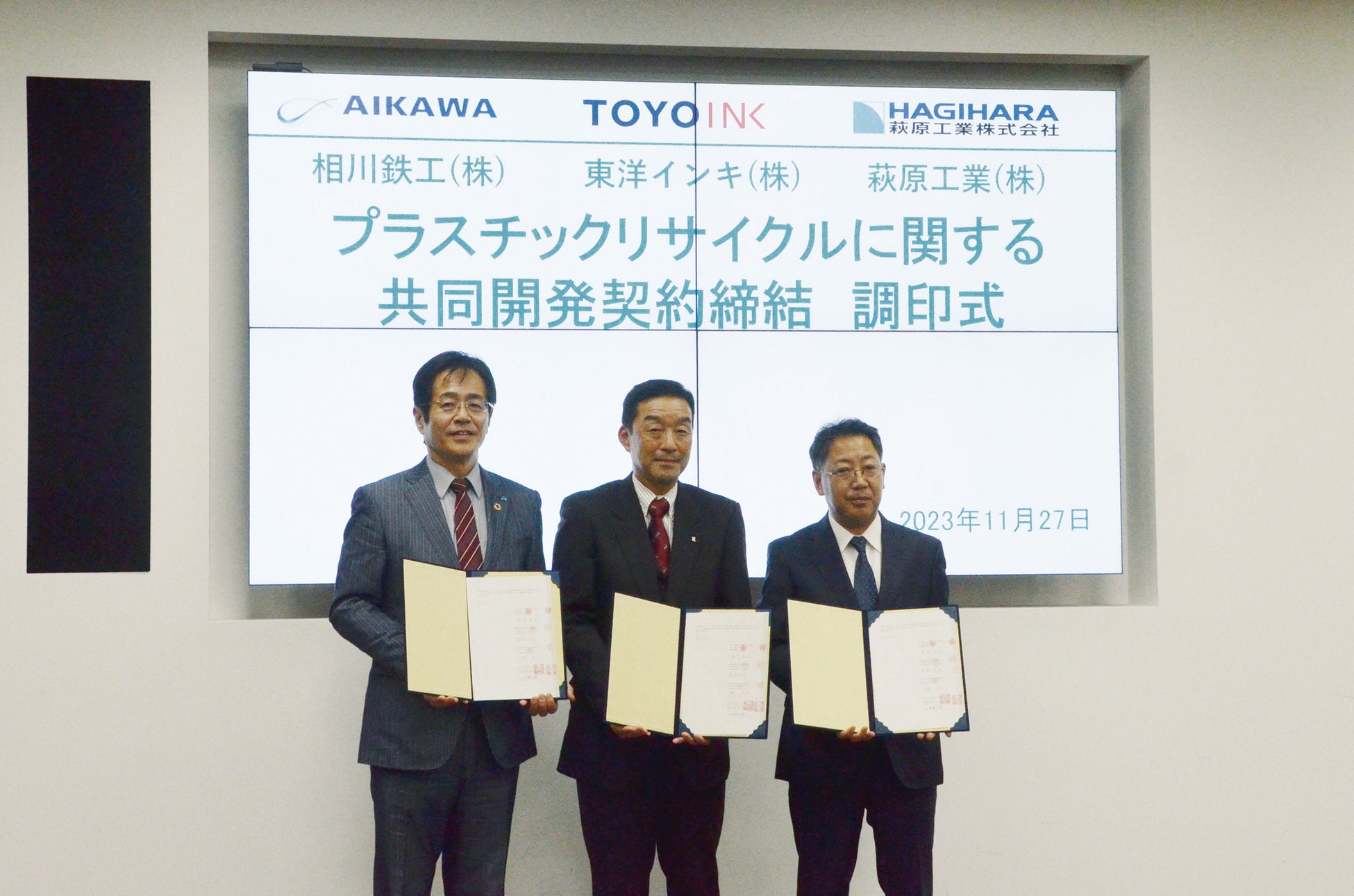 相川鉄工・萩原工業と、プラスチックリサイクルに関する共同開発契約を締結