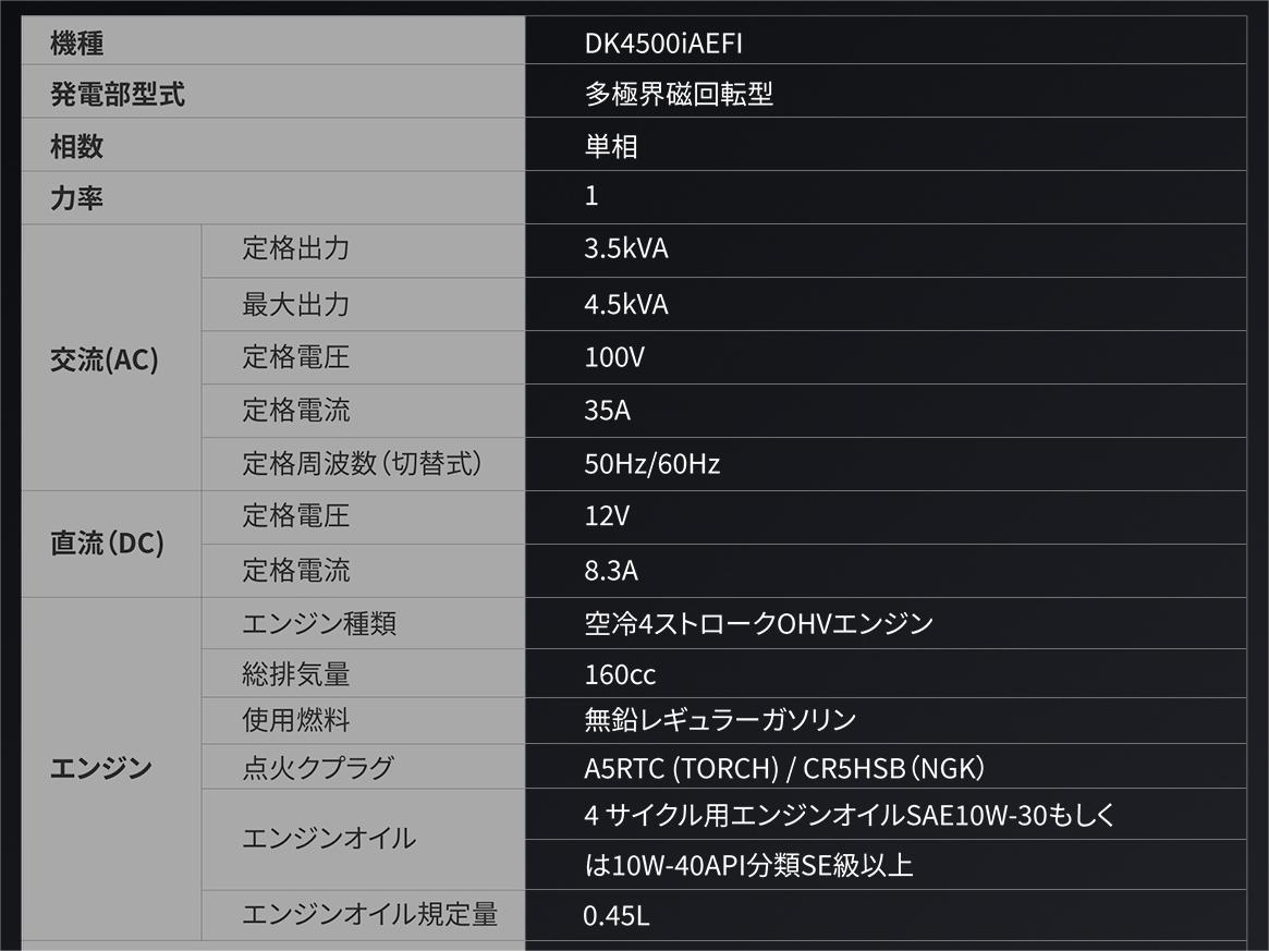 軽量化の新型インバーター発電機「DK4500IAEFI」の最大特徴:EFI(電子制御燃料噴射装置)搭載により始動性や保管性も向上。