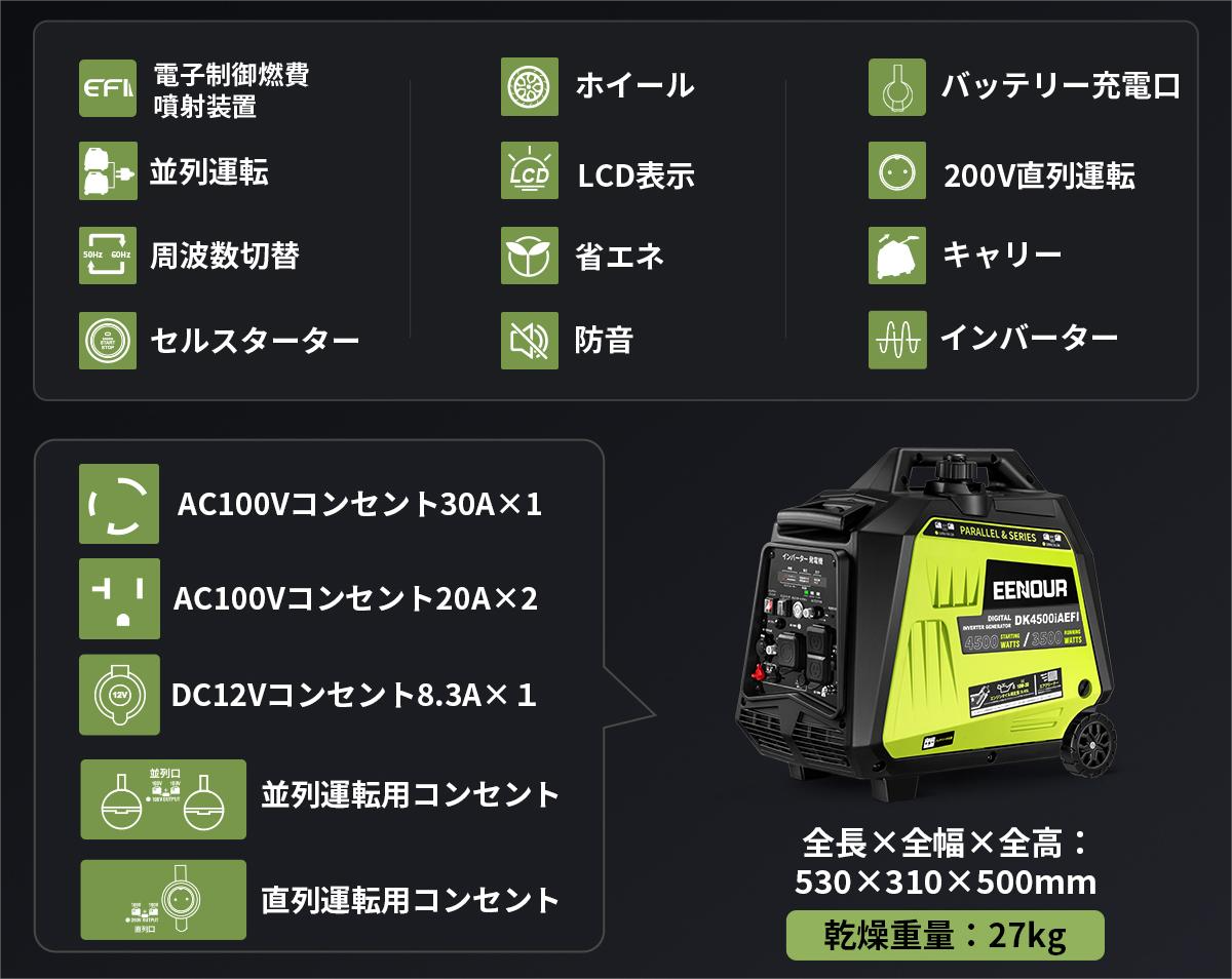 EENOUR 軽量化のEFI(電子制御燃料噴射装置)搭載インターバー発電機「DK4500IAEFI」が新登場!