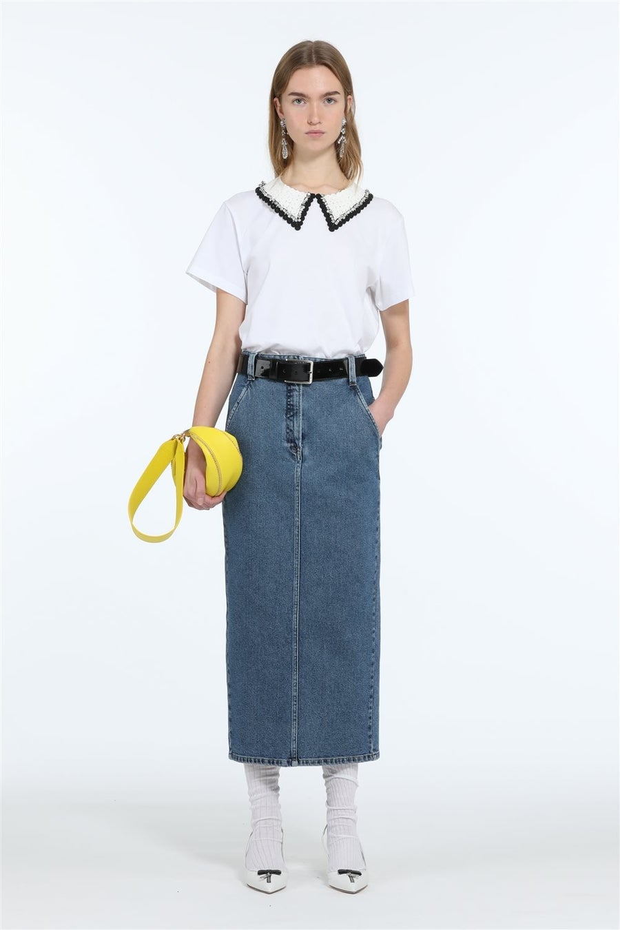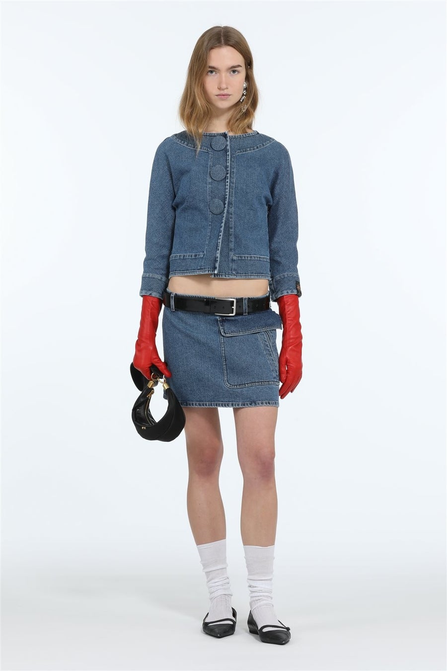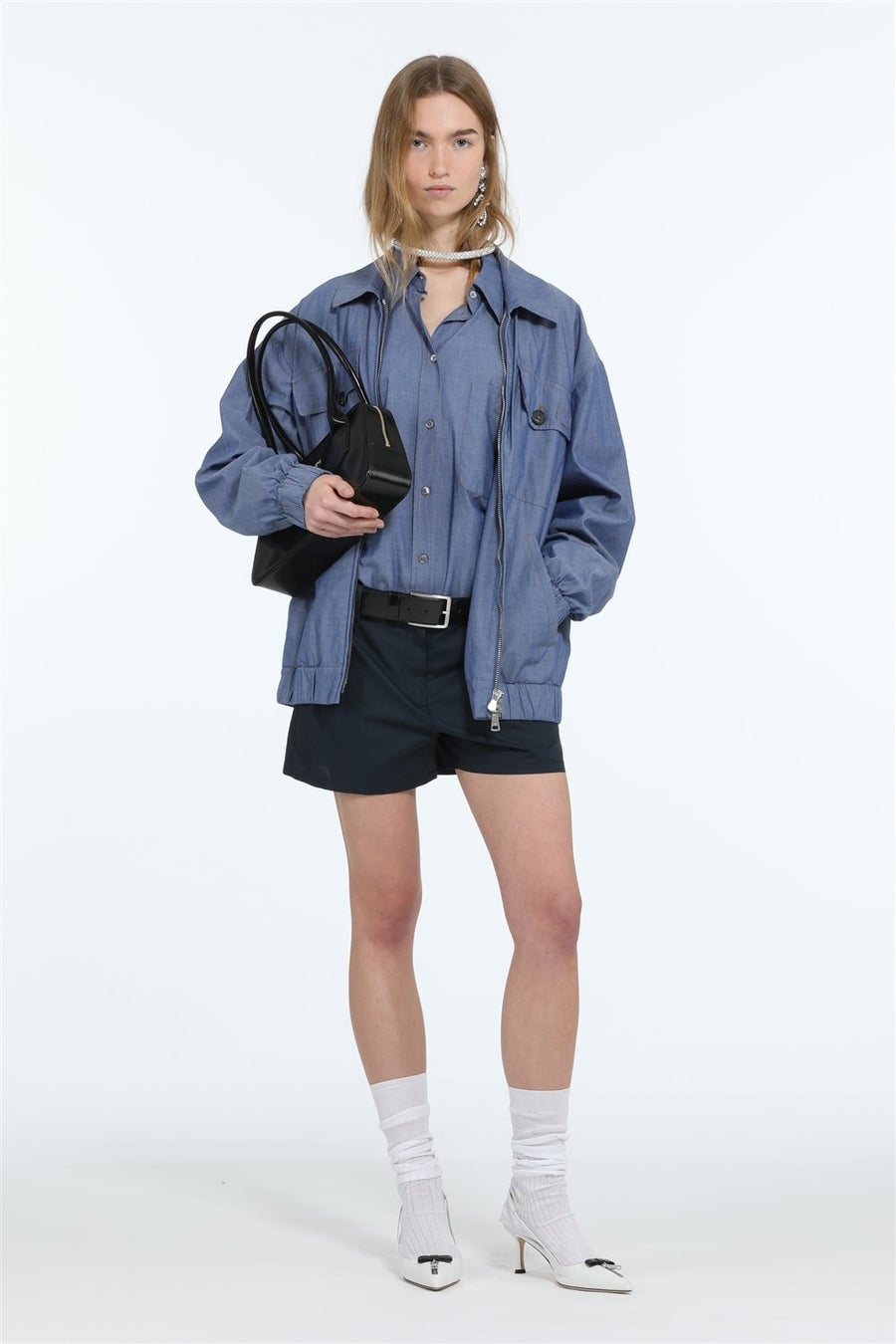 コレクションの中核を成すのは、上質なインディゴデニムのアイテムです。軽やかなデニムシャツから始まり、ジャケットやミニスカート、ショートパンツまで全身でデニムルックが楽しめる構成となっています。白い襟付きポロシャツとの組み合わせは、クラシック&ノスタルジックな英国らしさに回帰する今季トレンドを反映したプレッピースタイルを演出します。