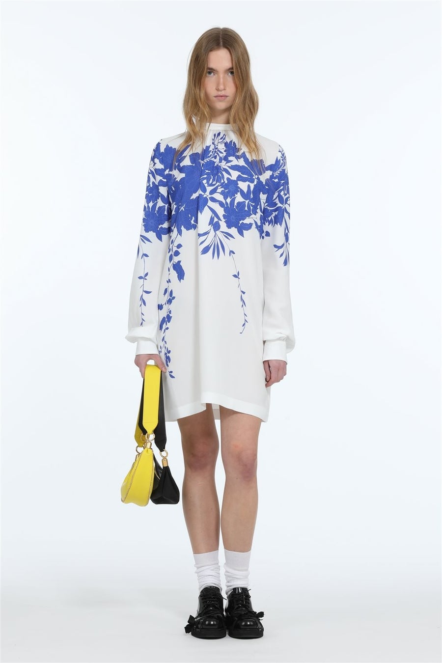 フラワープリントは、ブルーとホワイトを基調としたヴィンテージライクな色彩がポイント。花柄のロングドレスやミニドレス、ブラウス、プリーツスカートなどが揃っています。