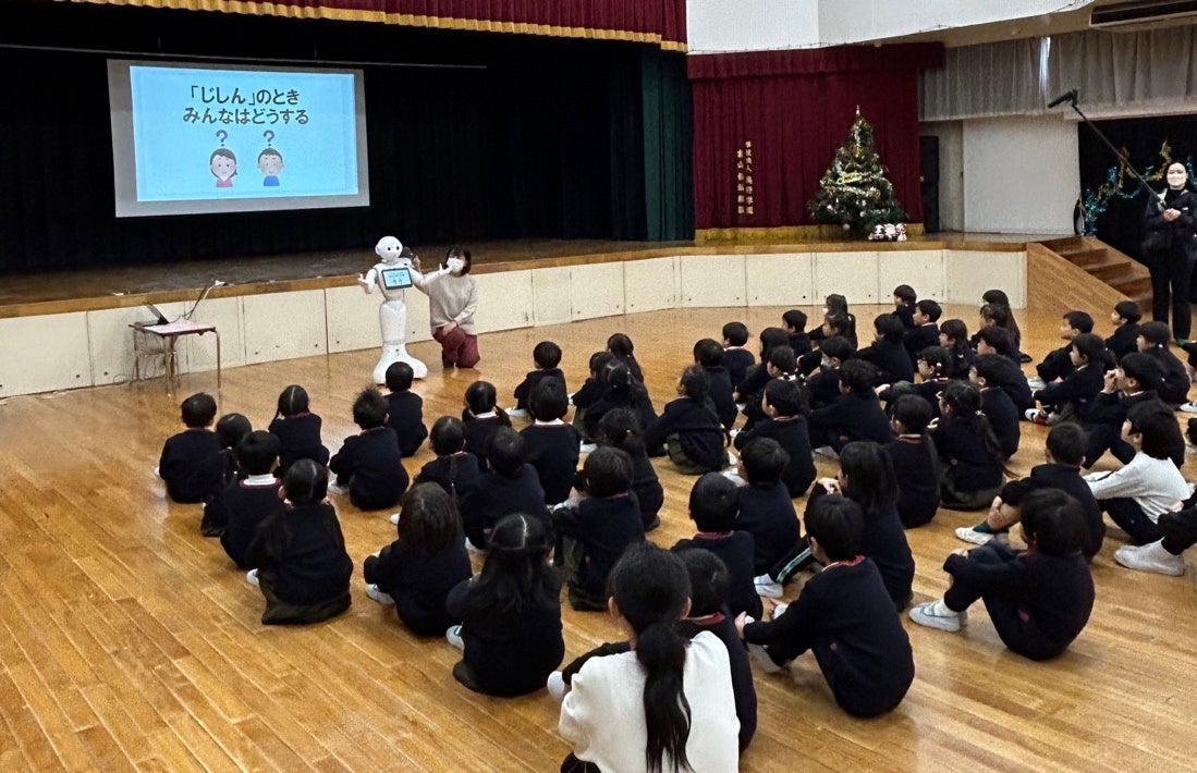 幼児が防災・減災に関心を持つきっかけとなる授業を実施することを目的に、大阪府とソフトバンク株式会社(以下「ソフトバンク」)がPepperによる幼児向け防災教育コンテンツを新たに作成しました。このスクールテンプレートの追加に先立って、2023年12月12日には、両者は、そのコンテンツを用いて出前授業を大阪府堺市南区の宮山台幼稚園で実施しました。