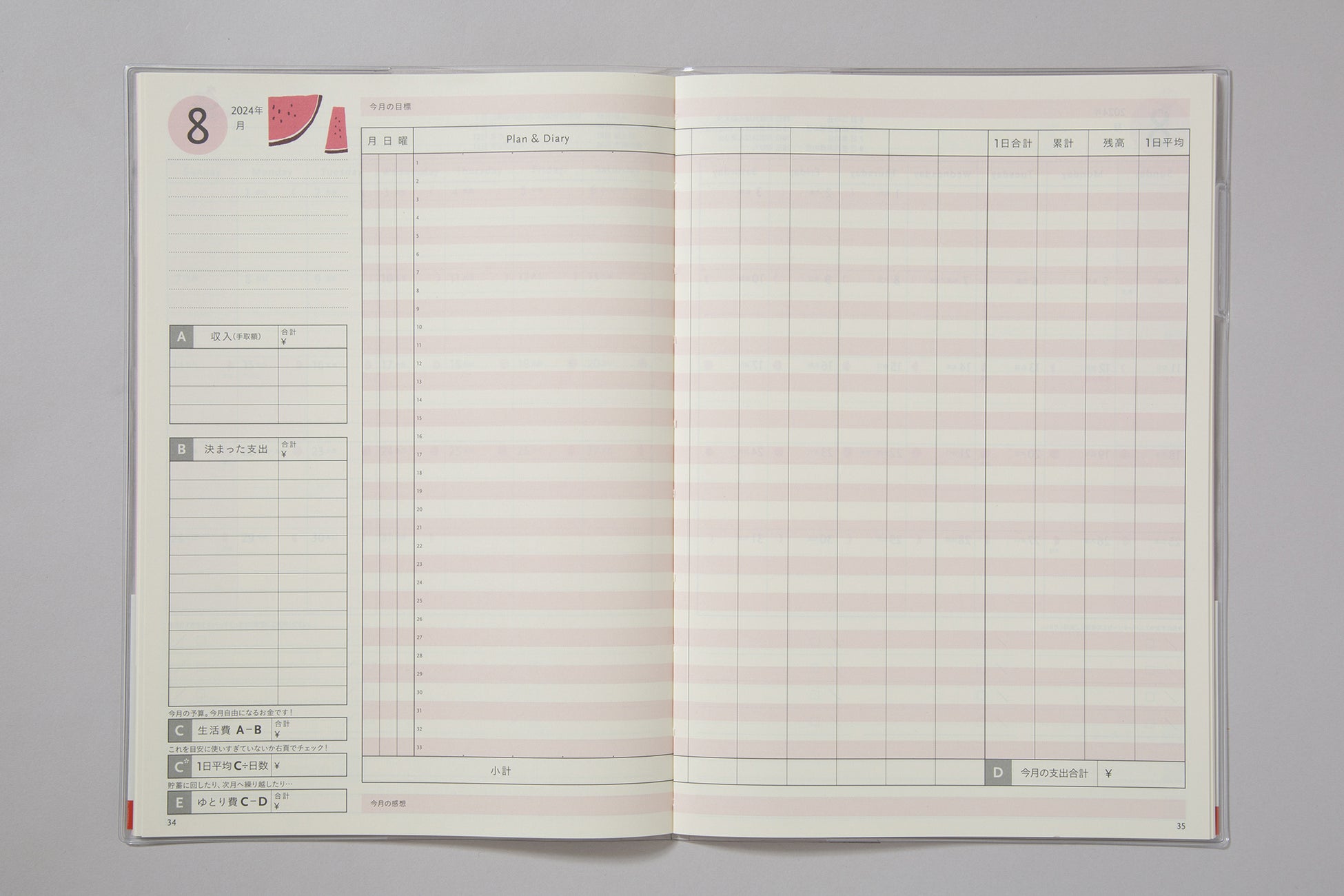 1日1行、1ヵ月見開きオンリーの、薄くて自由な家計簿。