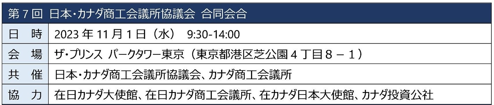 上記のように、貿易を拡大する日本とカナダの貿易主要プレーヤーおよび両国商工会議所は、更なる経済関係の深化を目指し、年1回合同での協議会を開催しています。日本側代表は三井物産の安永会長が、カナダ側代表はカンポティクス社のスティーブ・デッカ元社長が務め、第7回合同会合では政府から辻󠄀清人 外務副大臣(幼少期から青年期をカナダ バンクーバーで過ごした縁あり)と、メアリー・イン カナダ輸出促進・国際貿易経済発展大臣も参加されました。