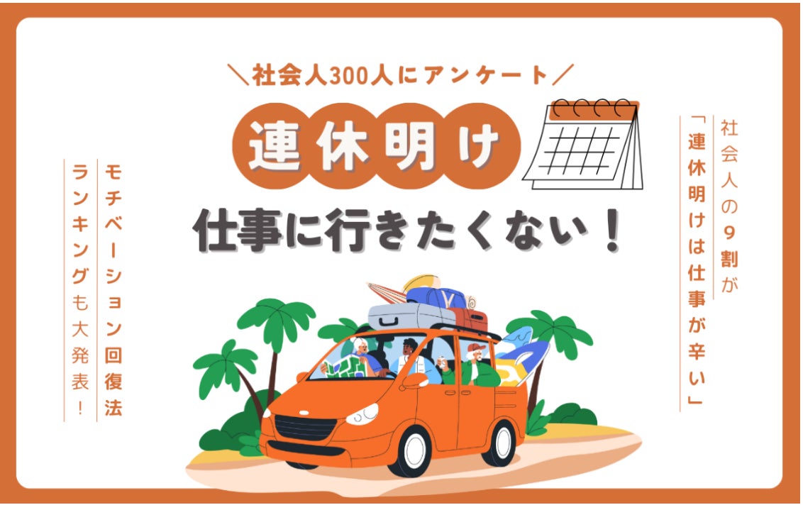 社会人300人に連休明けの仕事へのモチベーションについてアンケートを実施。約9割は「連休明けは仕事が辛い」と嘆く中、仕事を辞めたくまでなる人は…?スッキリスタートを切る方法は…?実態はいかに!