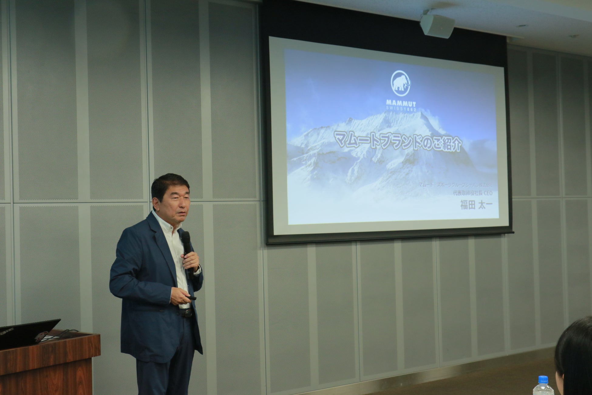 オープンに先駆けて行われた先行内覧会では、ストア体験だけでなく、ブランドプレゼンテーションルームやレセプション会場にて、マムート・スポーツグループジャパン株式会社 代表取締役社長 福田太一も登壇し、マムートのブランド紹介、本ストアのコンセプトを伝えさせていただきました。