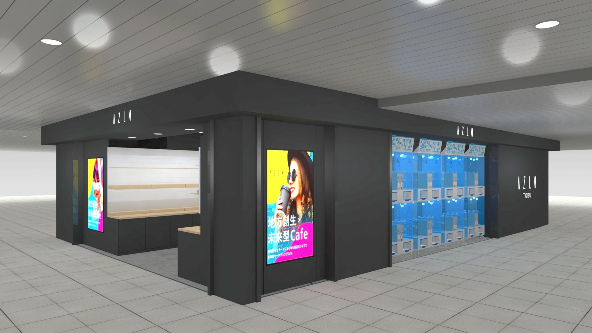 AZLMとは、「From A to Z , Live Marketing」の頭文字を引用しており、リアルとデジタルが融合した未来型の新たな空間活用の形です。今回オープンする『AZLM TOBU池袋店』は、全都道府県に事業所を有する当社のネットワークを活かし、日本各地の良いモノ・サービス・体験を発信する「地方創生をテーマにしたプロモーション特化型店舗」として、店内での地域の特産品や企業PRの展示、店頭イベント、店舗壁面の大型サイネージの活用など、当社が全国の自治体・企業に代わって「商品・サービス」と「人」を繋ぐ役割を担い、情報発信等の一翼を担います。首都圏で期間限定のポップアップストアを開設する際のネックとなっていた準備や費用といった課題を解決し、1日平均142万人が乗降する全国有数のターミナル駅「池袋」でアピールしたいという自治体や企業のご要望にお応えします。
