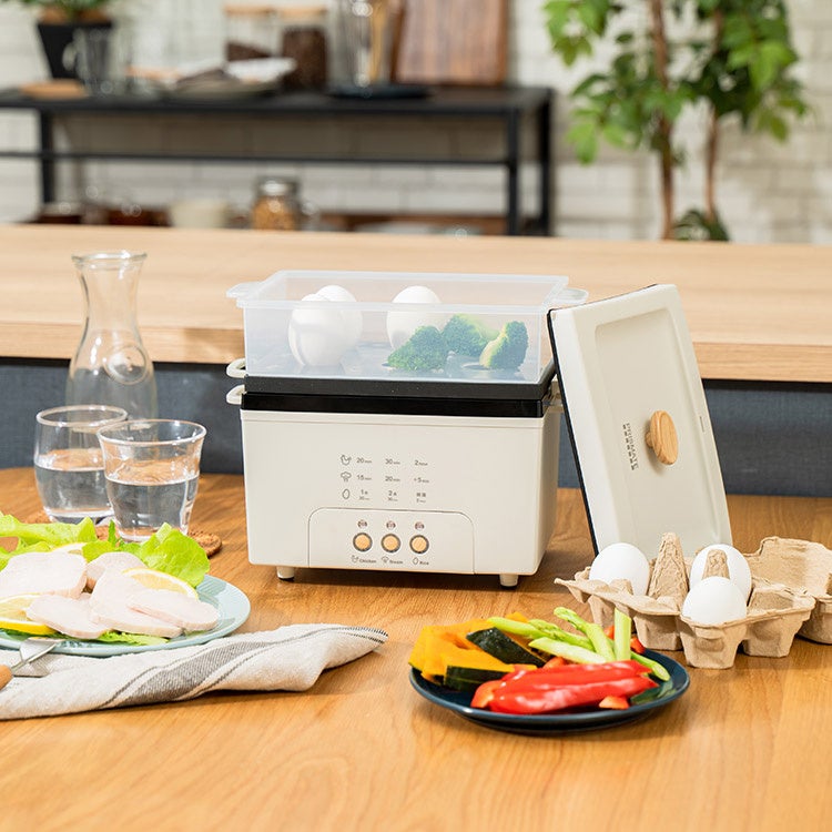 サラダチキン×スチーム×炊飯の便利な1台3役。蒸し料理やゆで卵をはじめ、低糖質・高たんぱくなヘルシーメニューが簡単・時短で作れる50種類の充実レシピ。