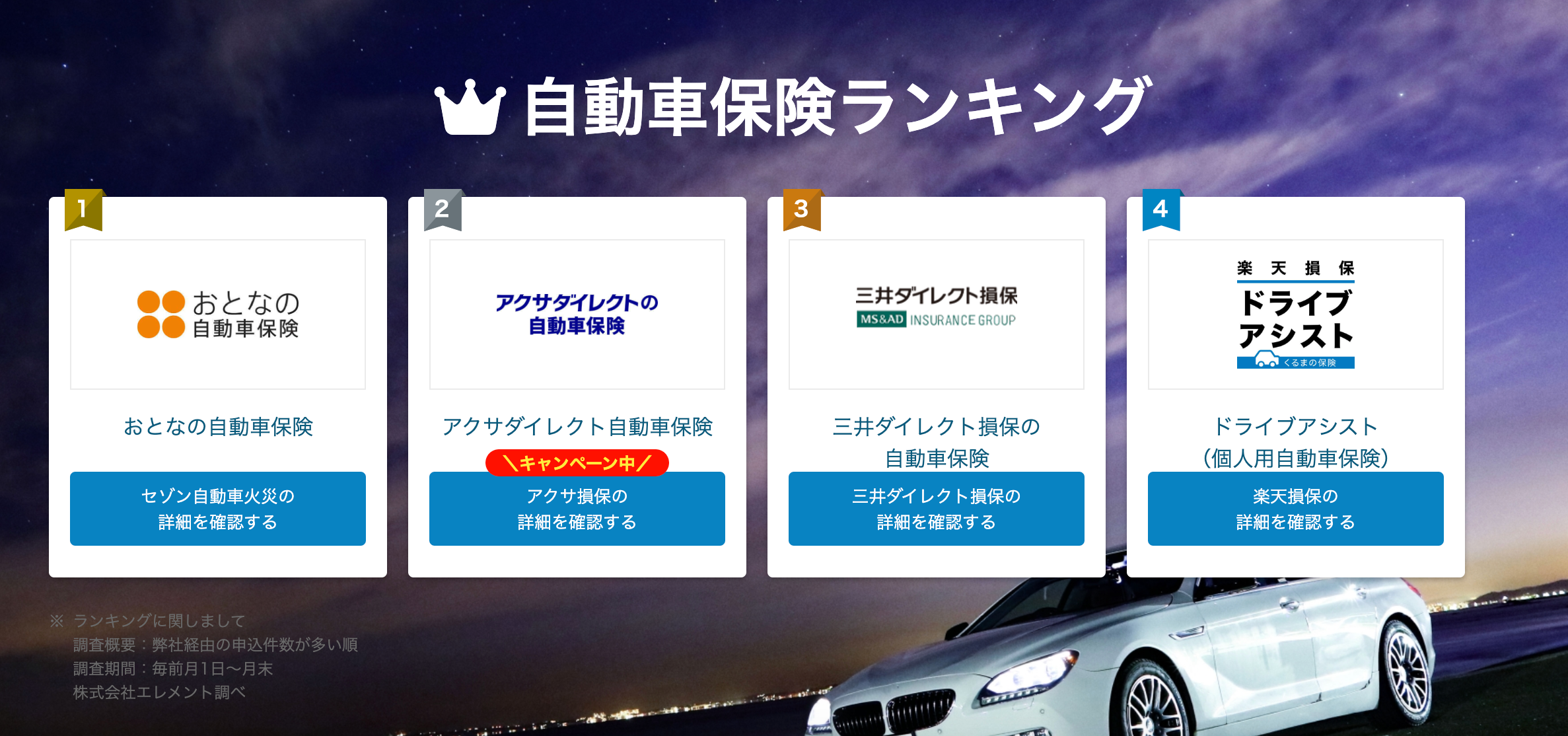 【2022年最新】自動車保険おすすめ人気ランキングTOP4: https://car-h.info/