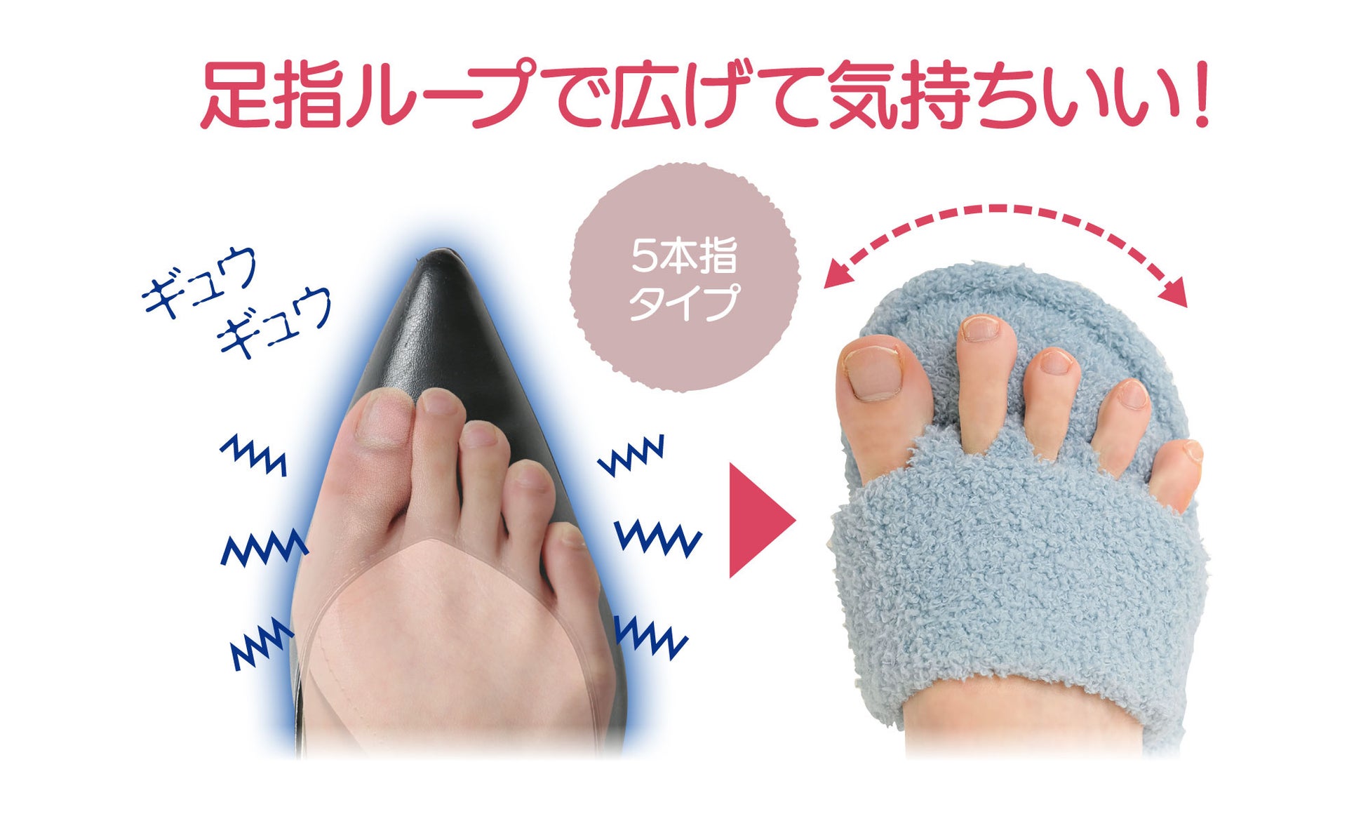 グンッと広げてリラックス!5本指タイプのふわふわスリッパ
