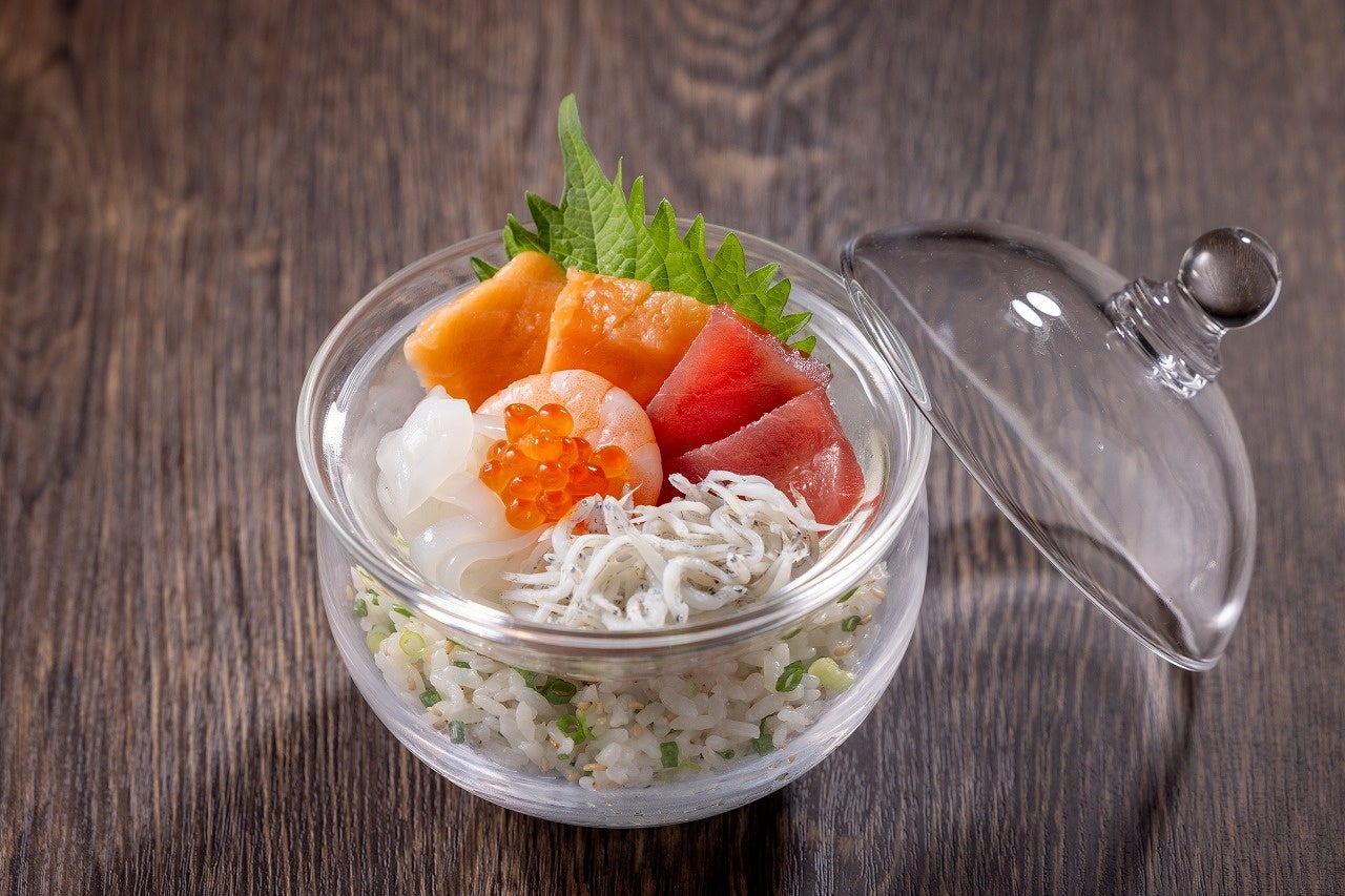 ・マグロ、いくら、甘えび、サーモン、しらす、イカ を乗せた海鮮丼